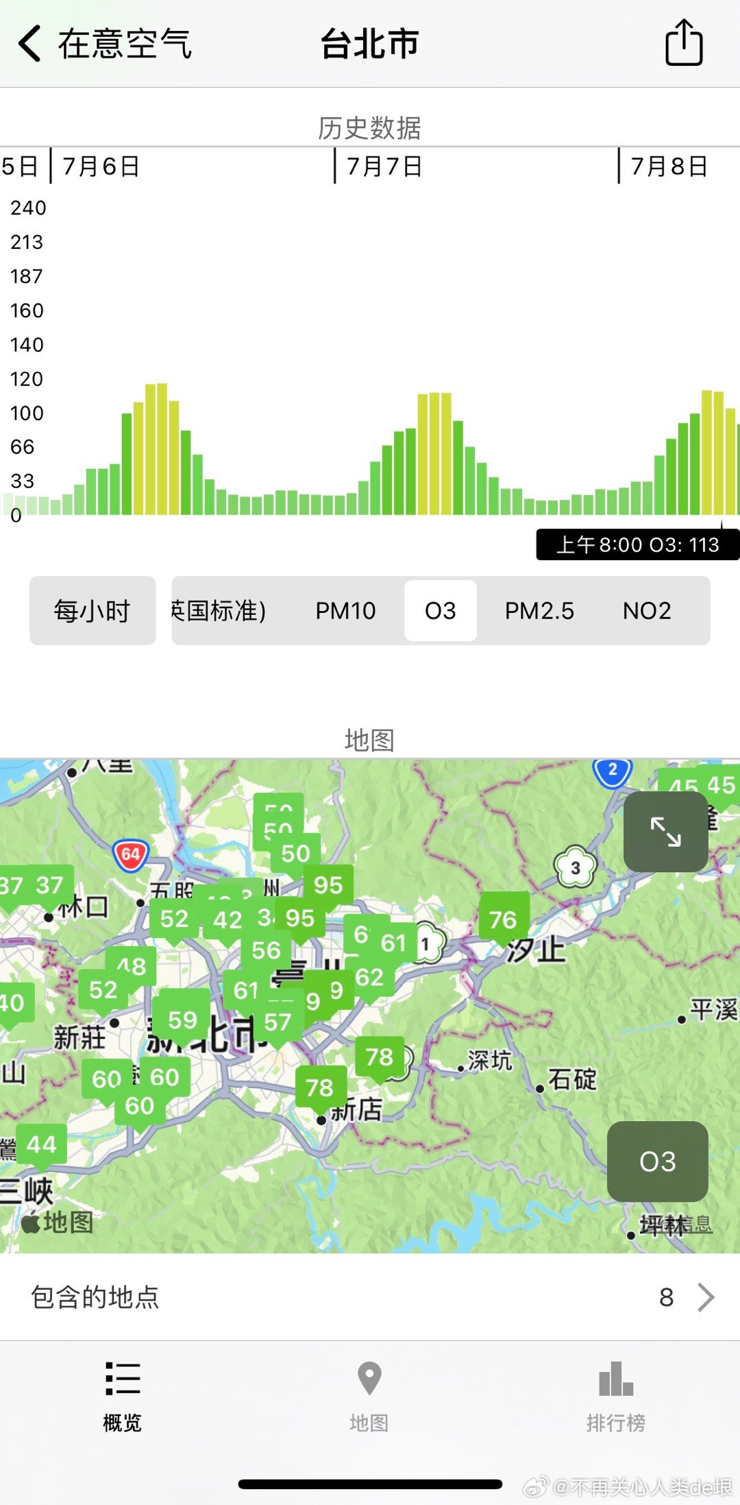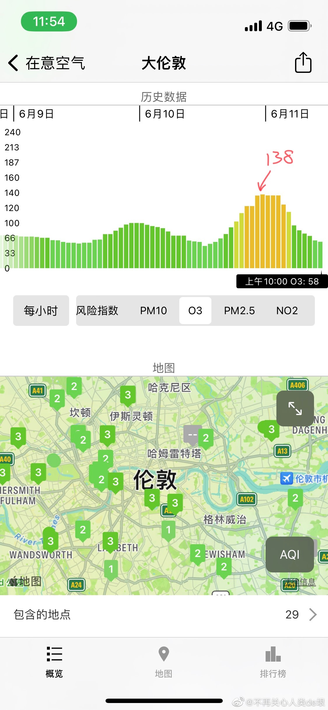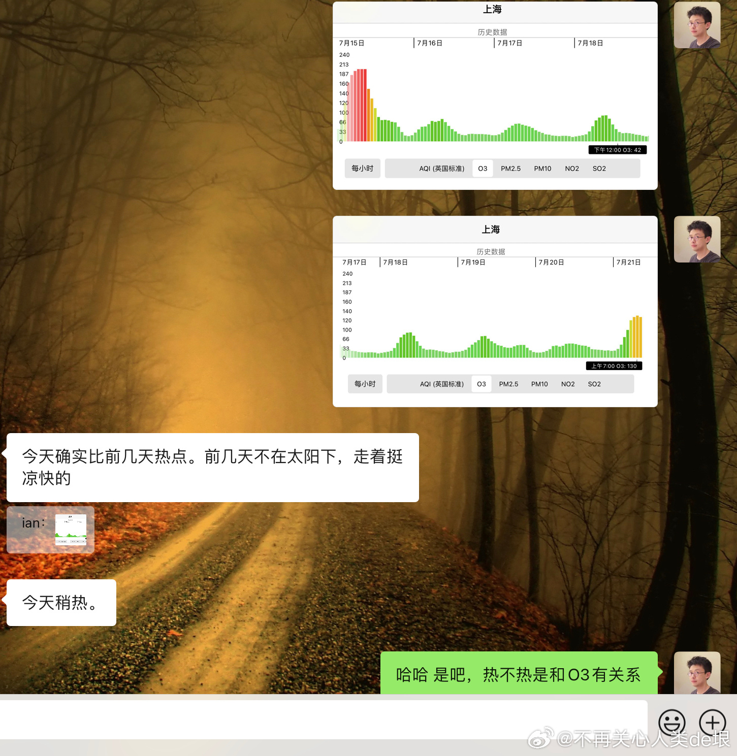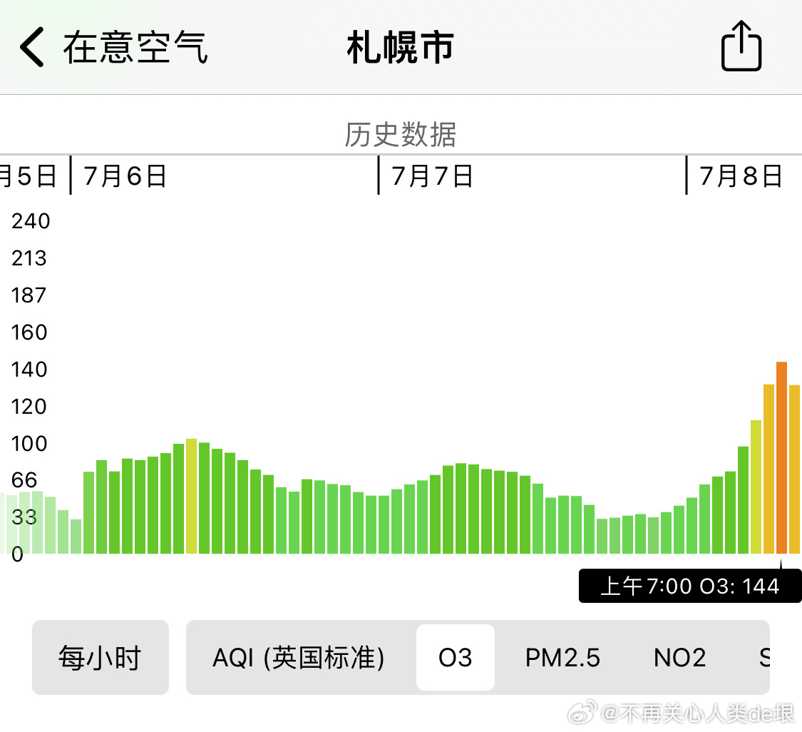 这戏也太笨了,半夜 O3=138,一大早就下去了 O3=58。晚上 O3 怎么来的?但是呢,人们脑子都已经残了,不会发现。他们不知道 O3 的保温能力是 CO2 的 1000 倍,超级温室气体。