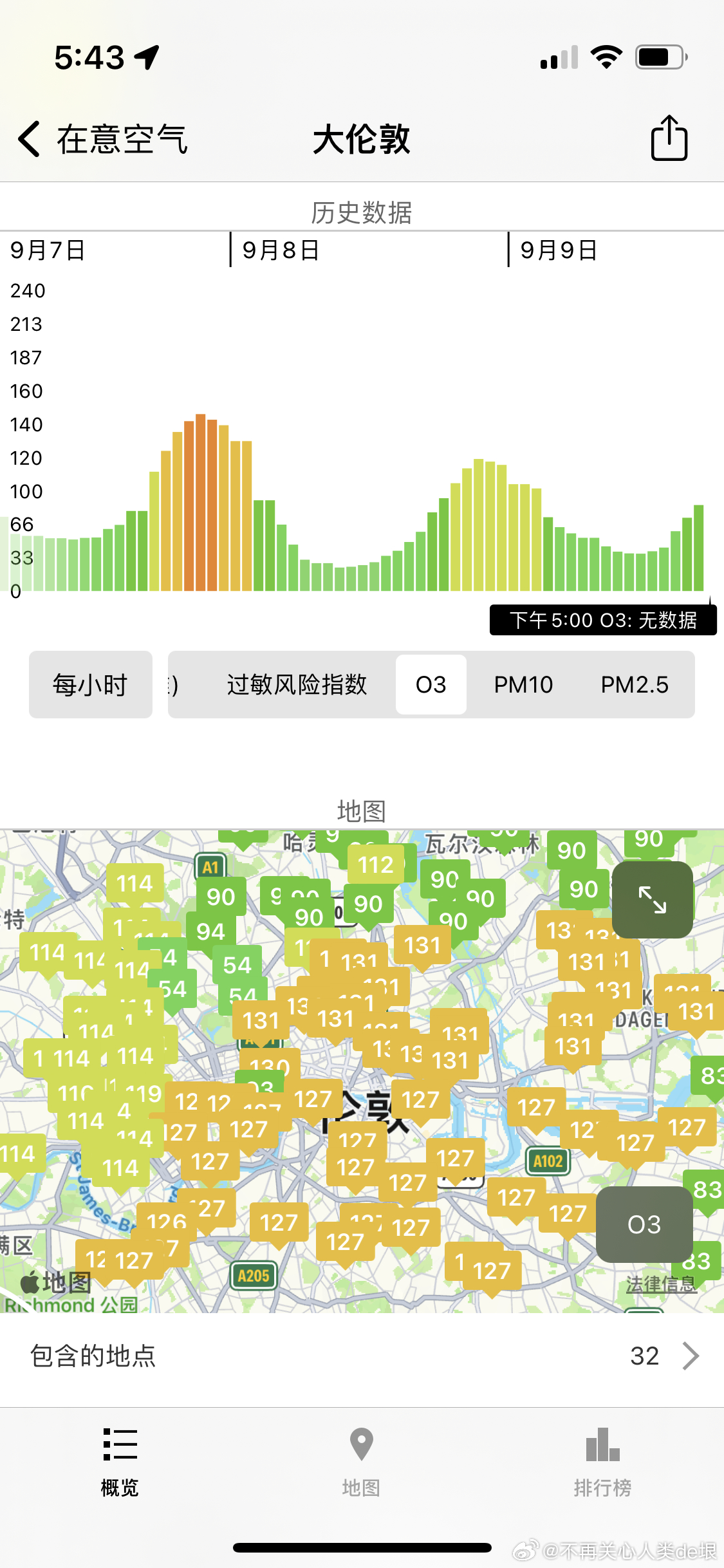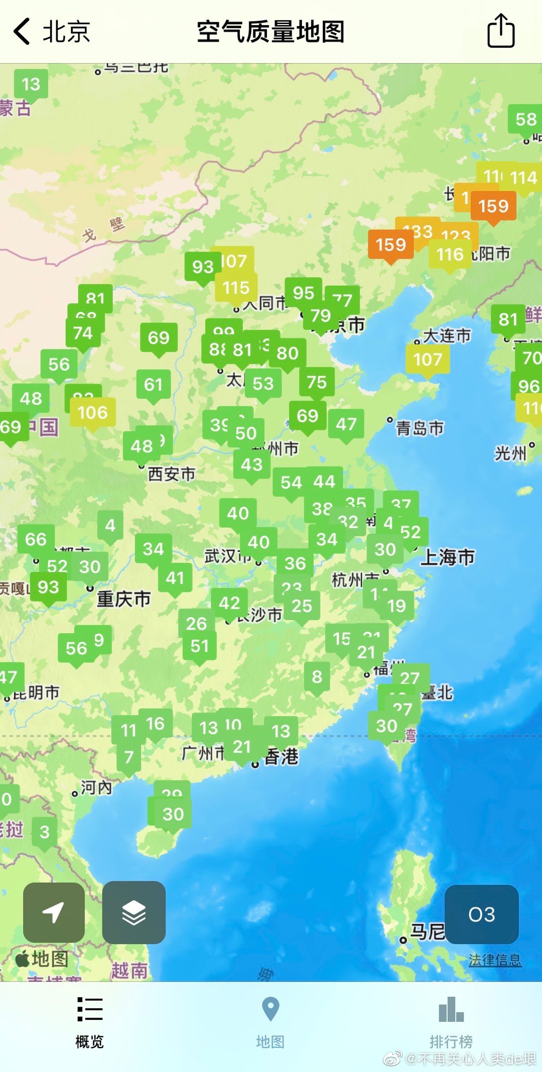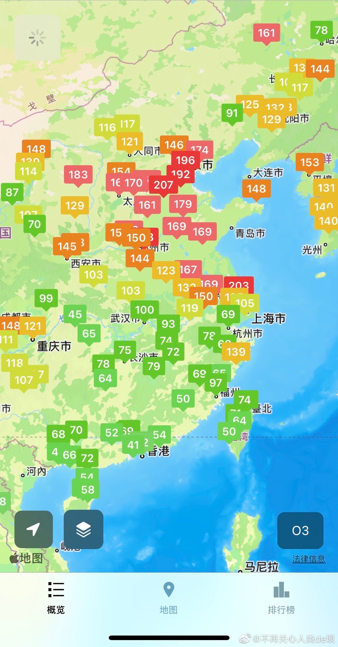 这戏也太笨了,半夜 O3=138,一大早就下去了 O3=58。晚上 O3 怎么来的?但是呢,人们脑子都已经残了,不会发现。他们不知道 O3 的保温能力是 CO2 的 1000 倍,超级温室气体。