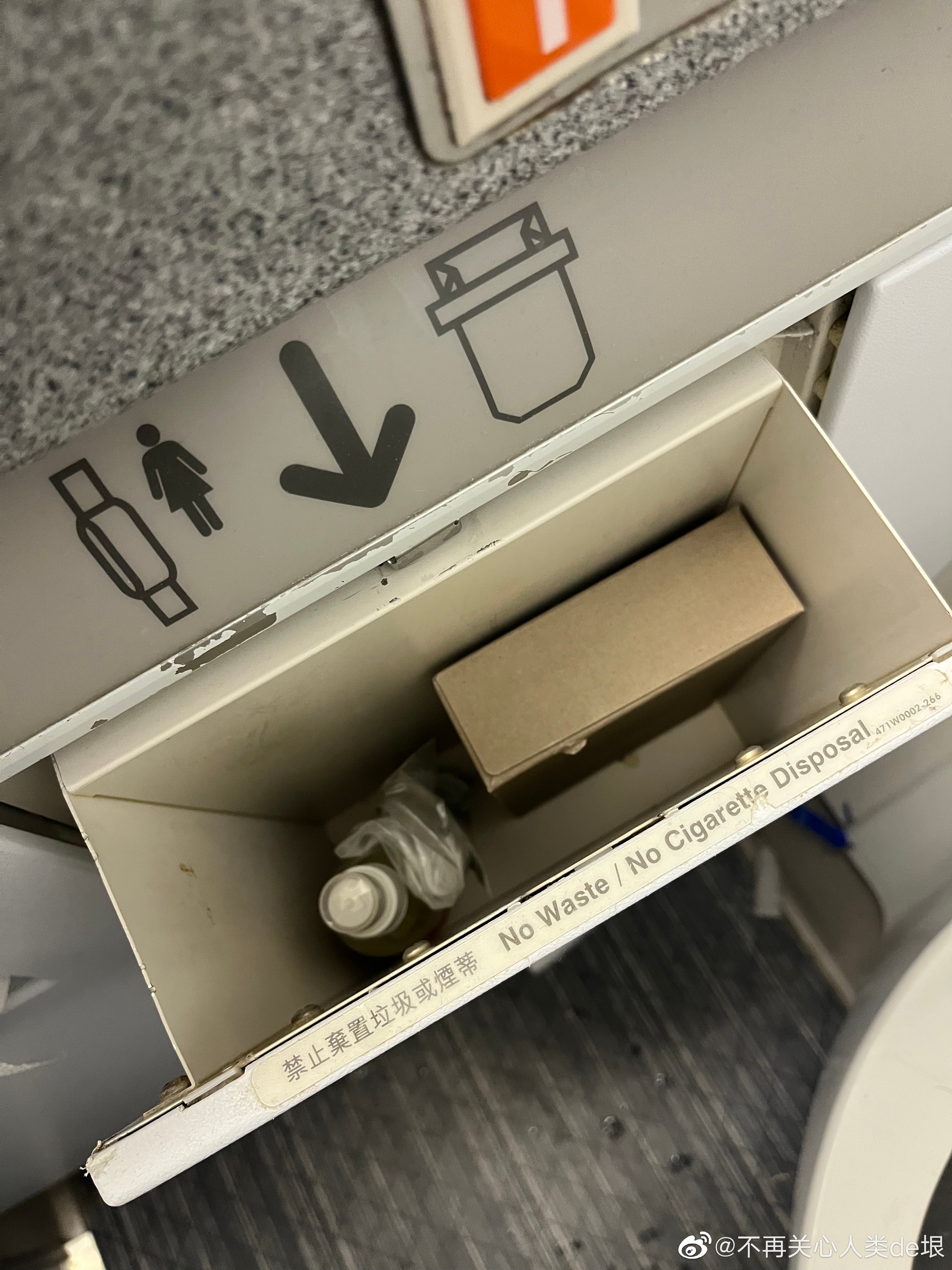 我把瓶盖拧开闻了一下,果然就是这个气味。整个机场,机舱和卫生间里都是这个气味。虽然这产品写着通过了某种“标准”,而且还因为不可燃,所以批准在飞机上使用。但这东西本来就是没必要的,为什么要在整个机场和机舱里释放这种东西呢?所以我觉得这些“标准”是在打掩护。这东西应该是有秘密的毒性,只是无法被现有的标准检测出来而已。