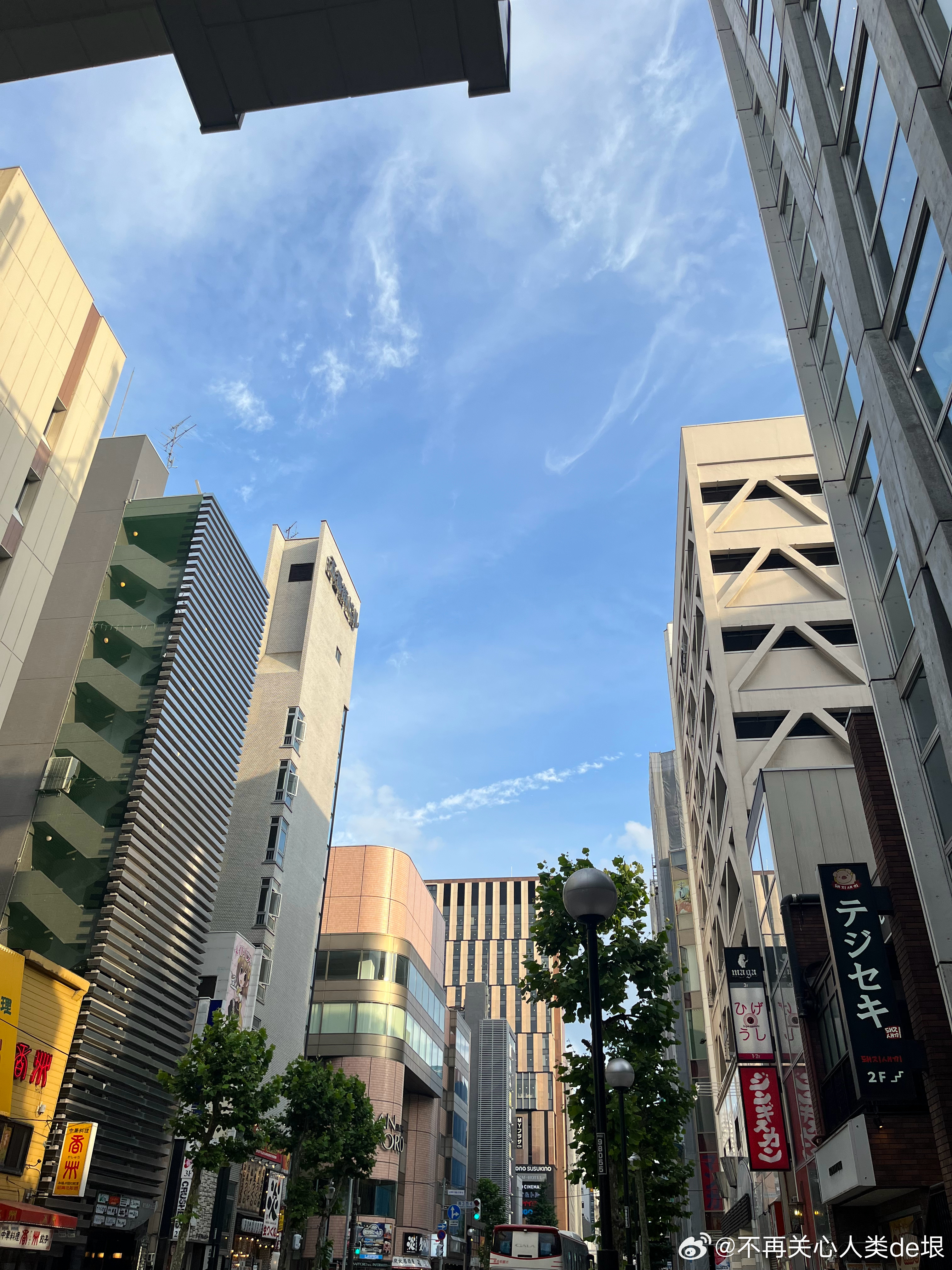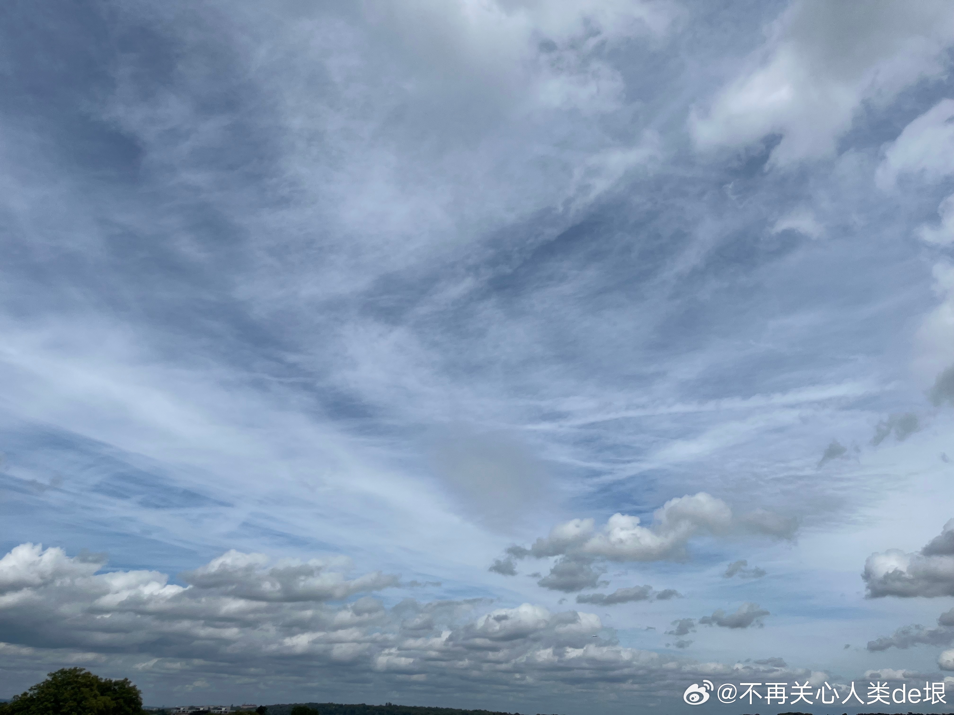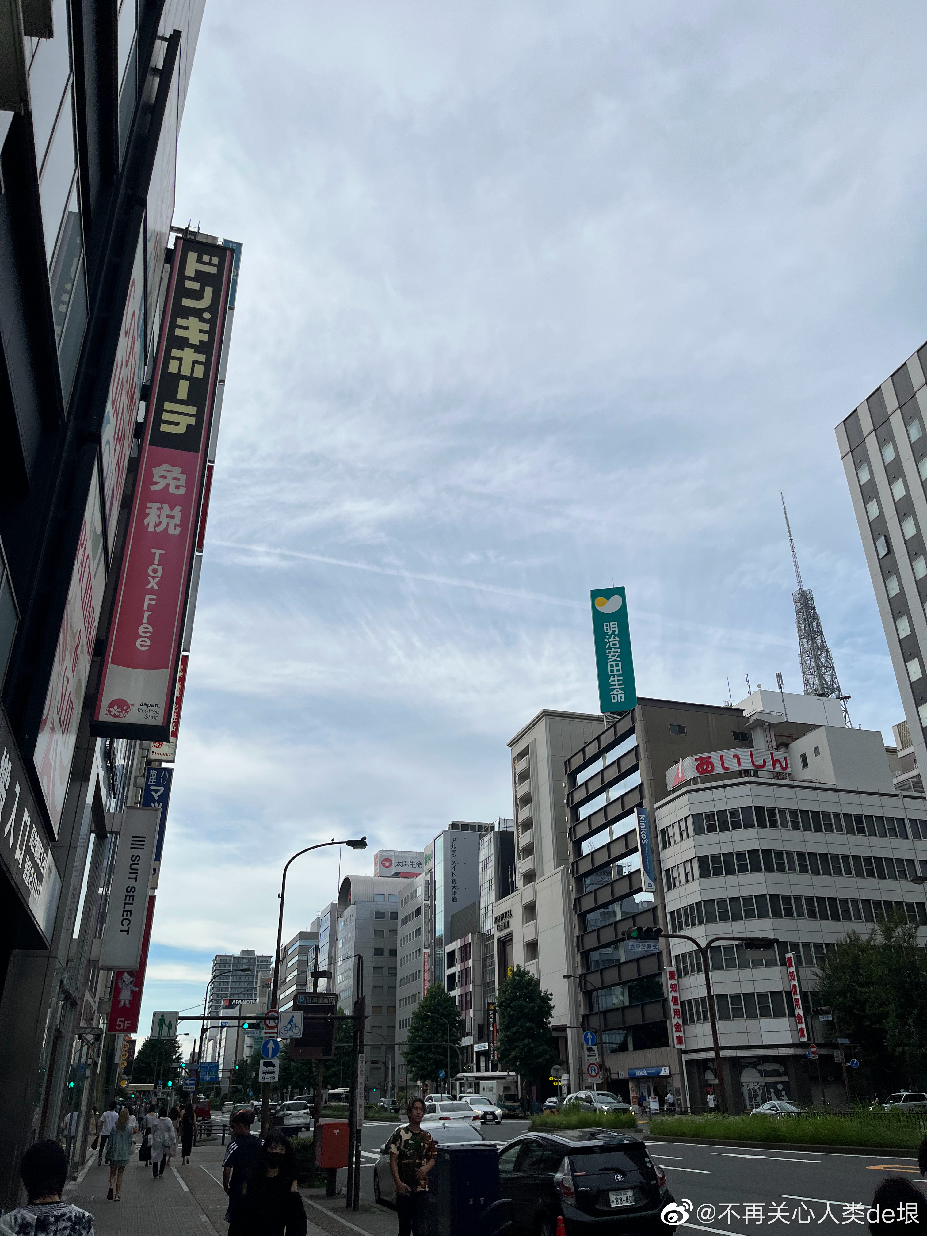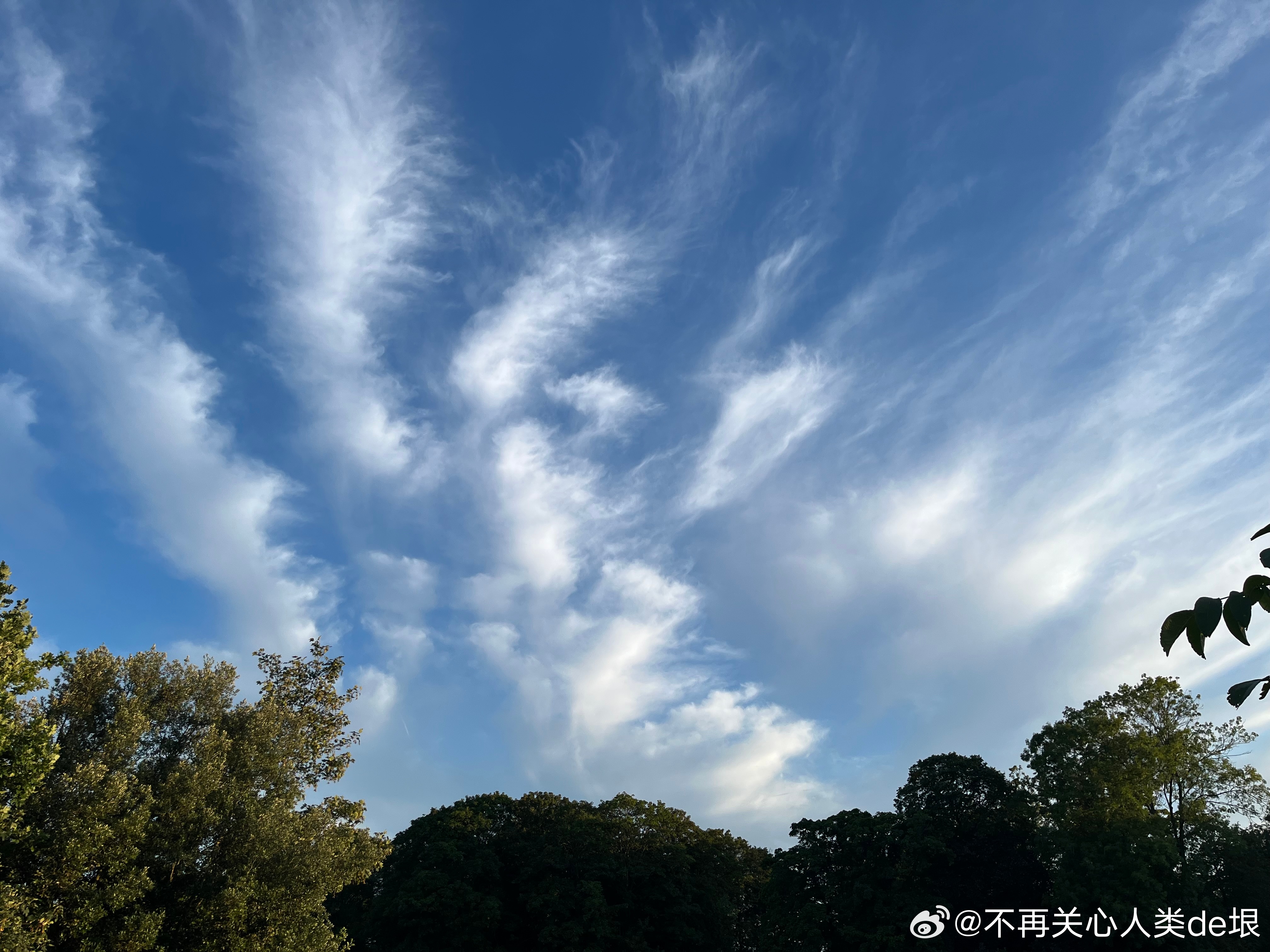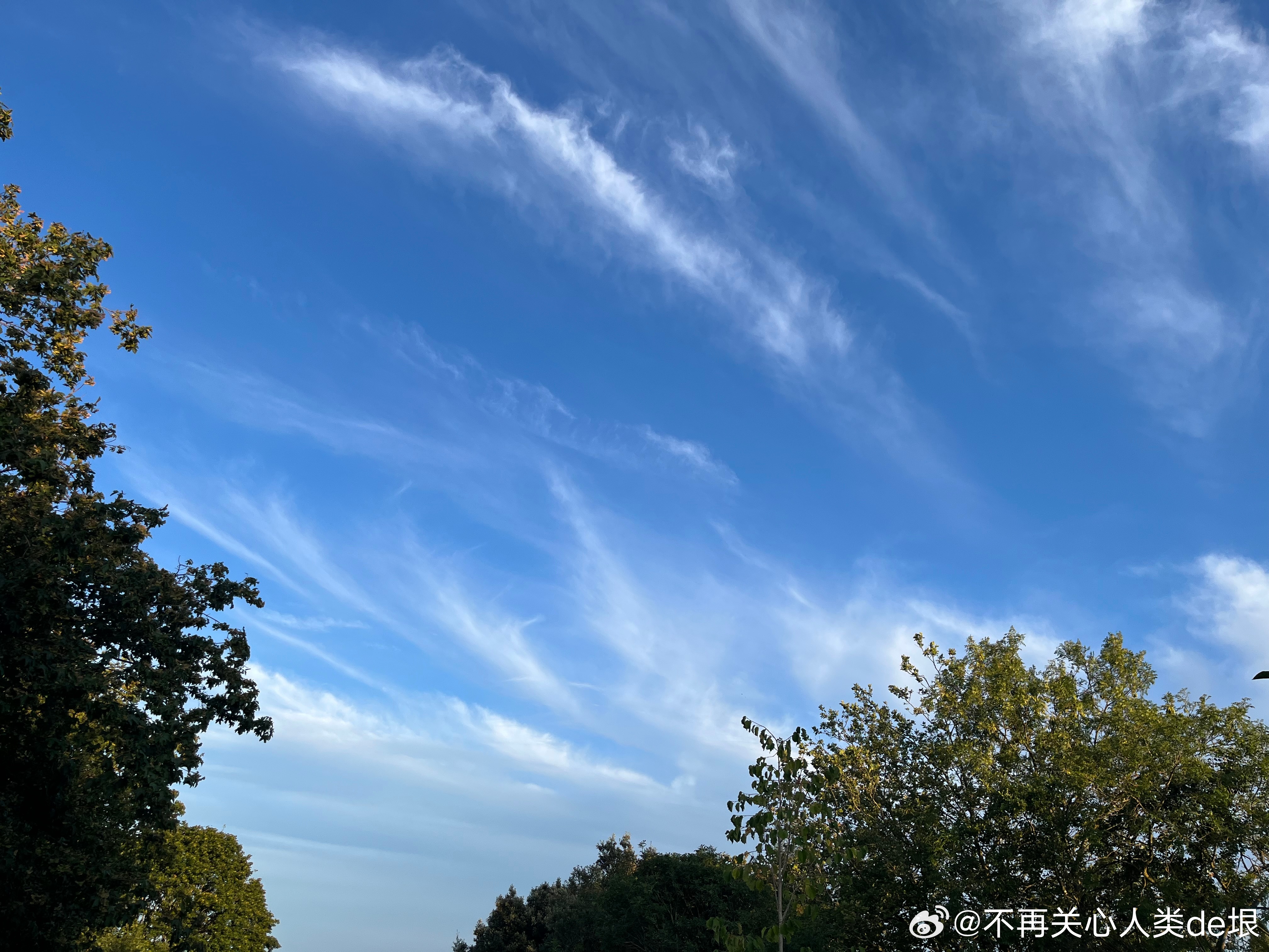 傍晚拍到一张更明显的,看那条很长的白线。那只可能是飞机弄出来的。 可能本来是在云上面喷洒,以为人看不见。哪知道被风一吹,整体飘出来,就暴露了。 日本·东京