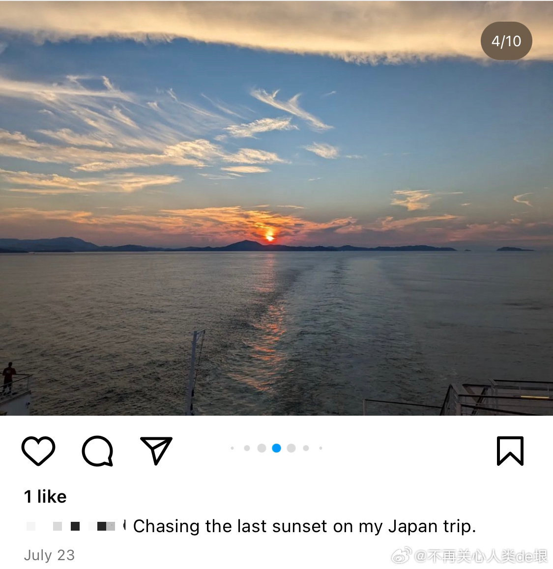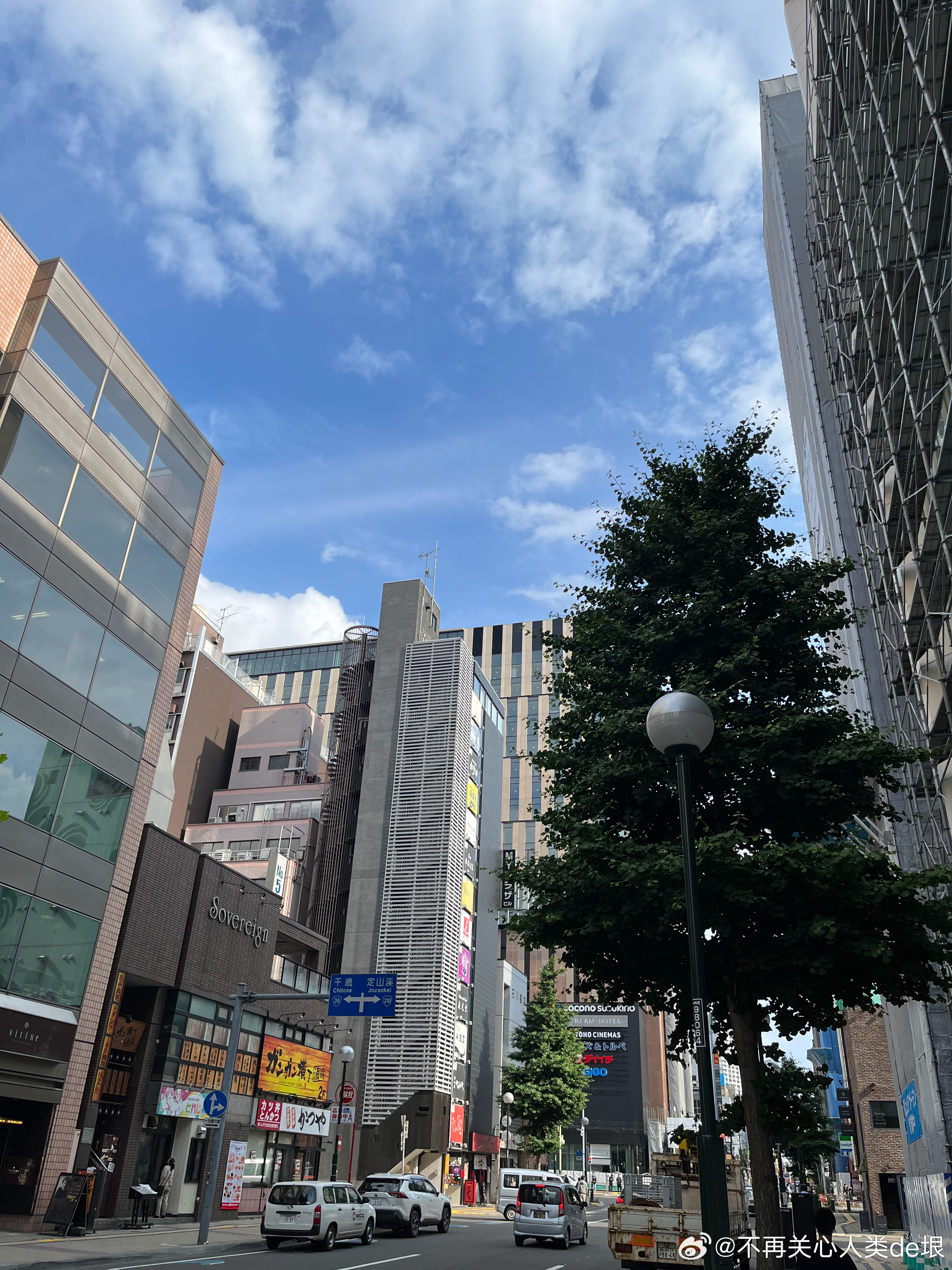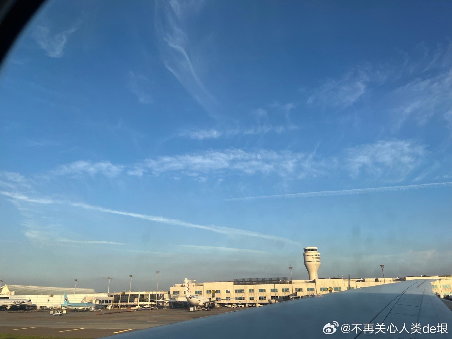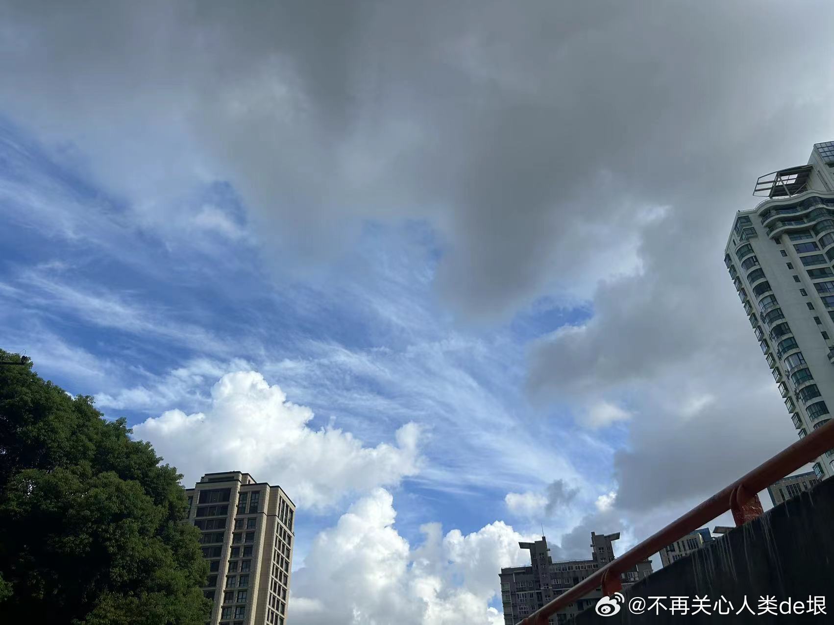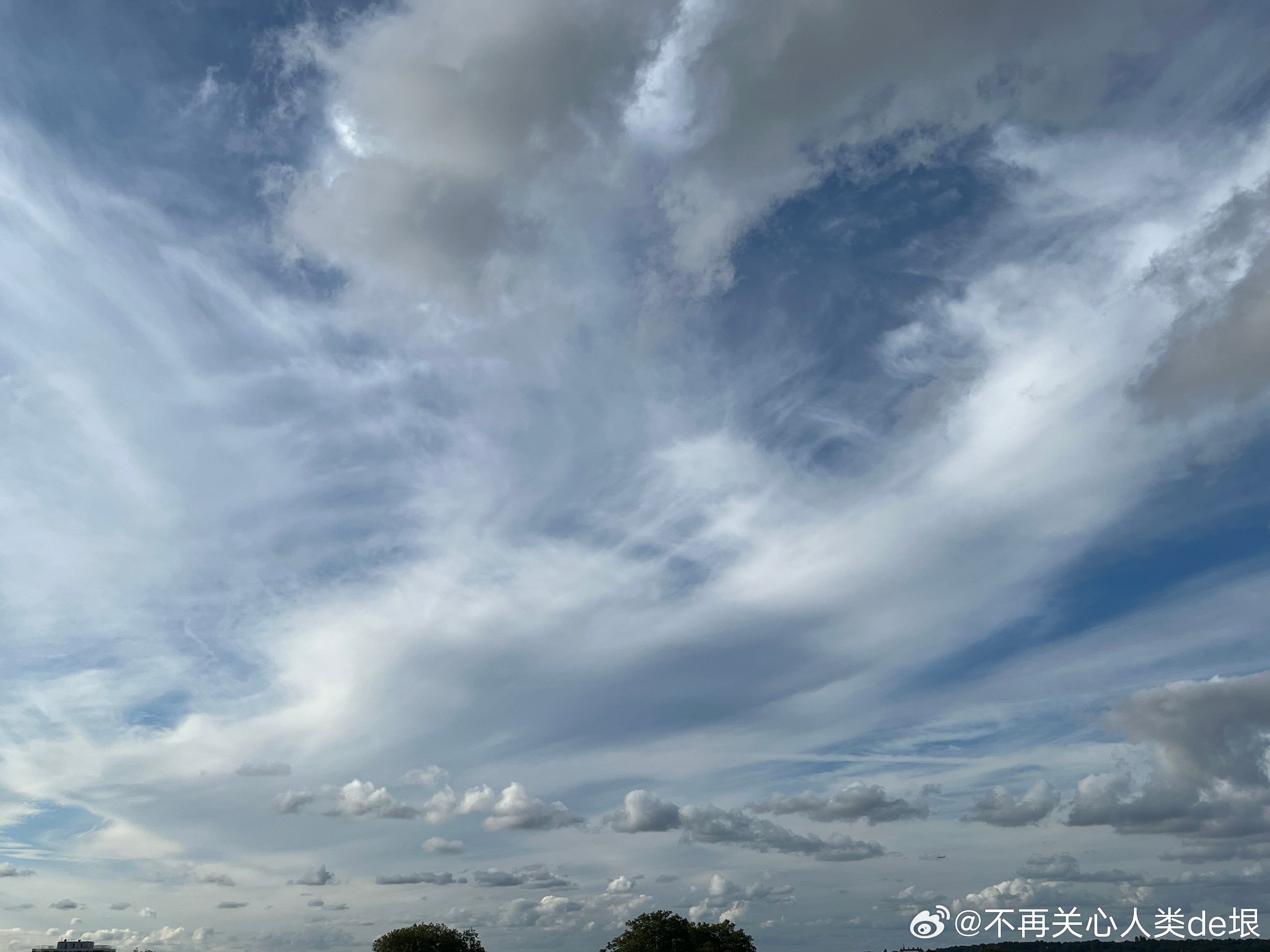 傍晚拍到一张更明显的,看那条很长的白线。那只可能是飞机弄出来的。 可能本来是在云上面喷洒,以为人看不见。哪知道被风一吹,整体飘出来,就暴露了。 日本·东京