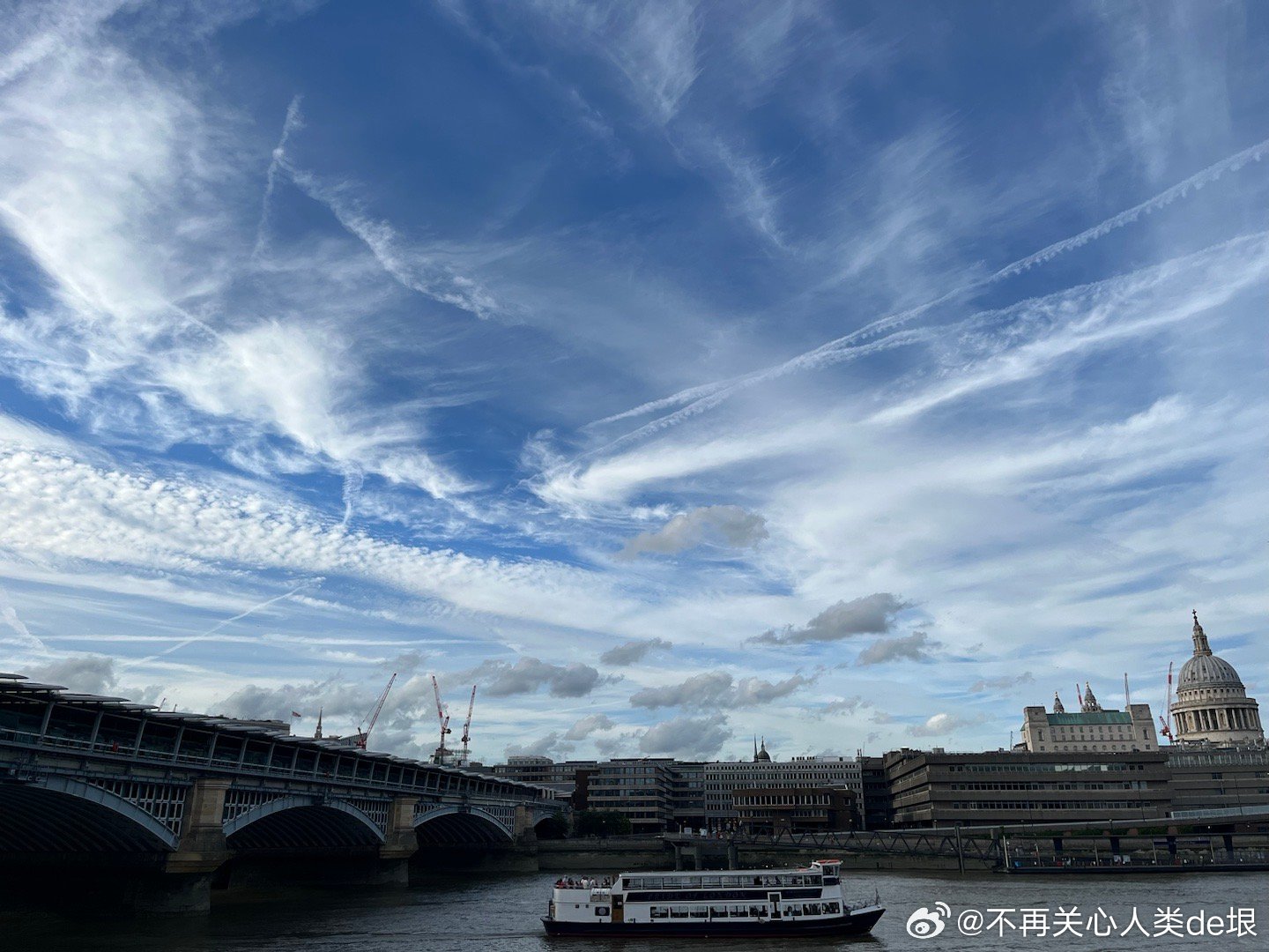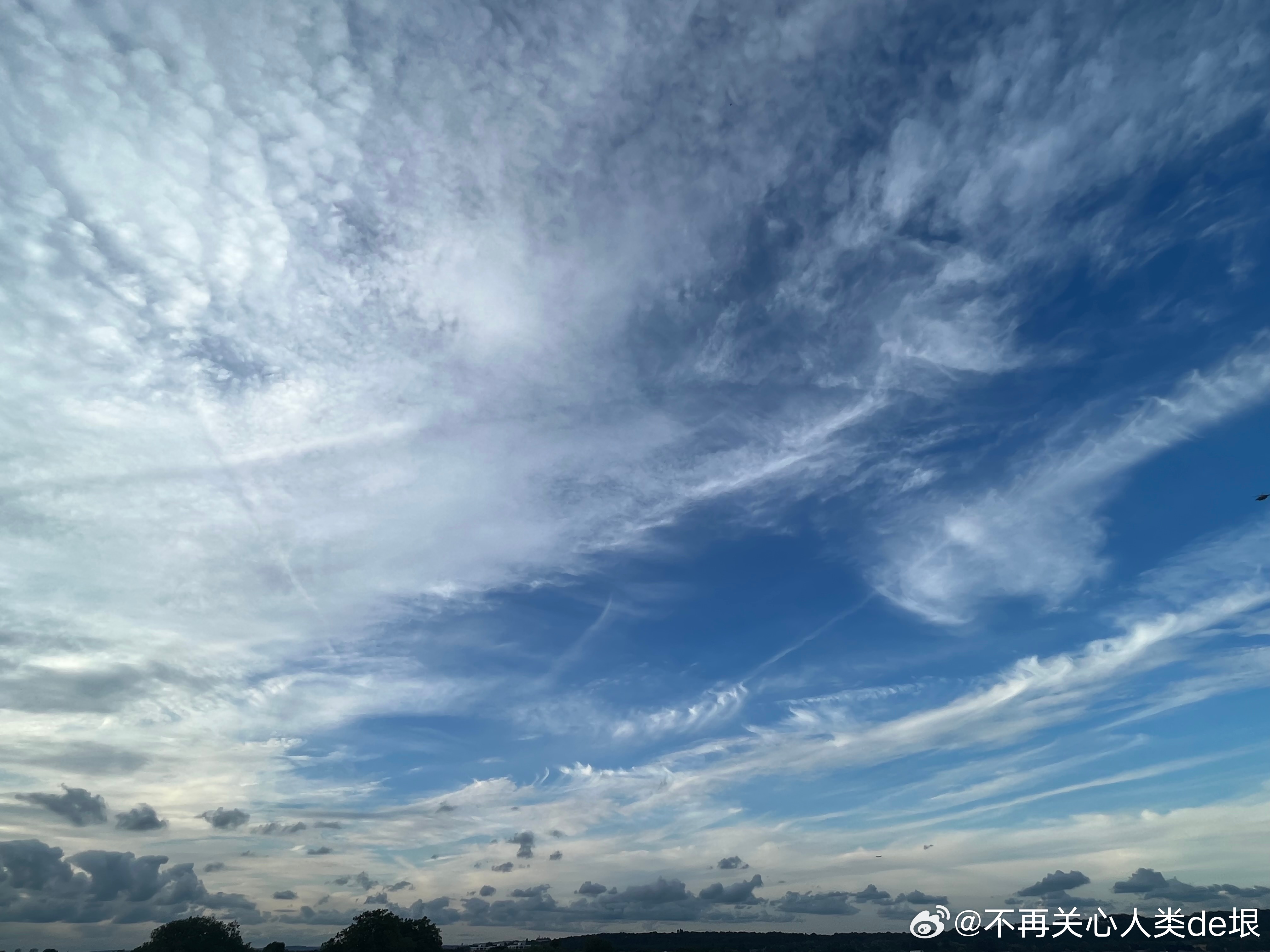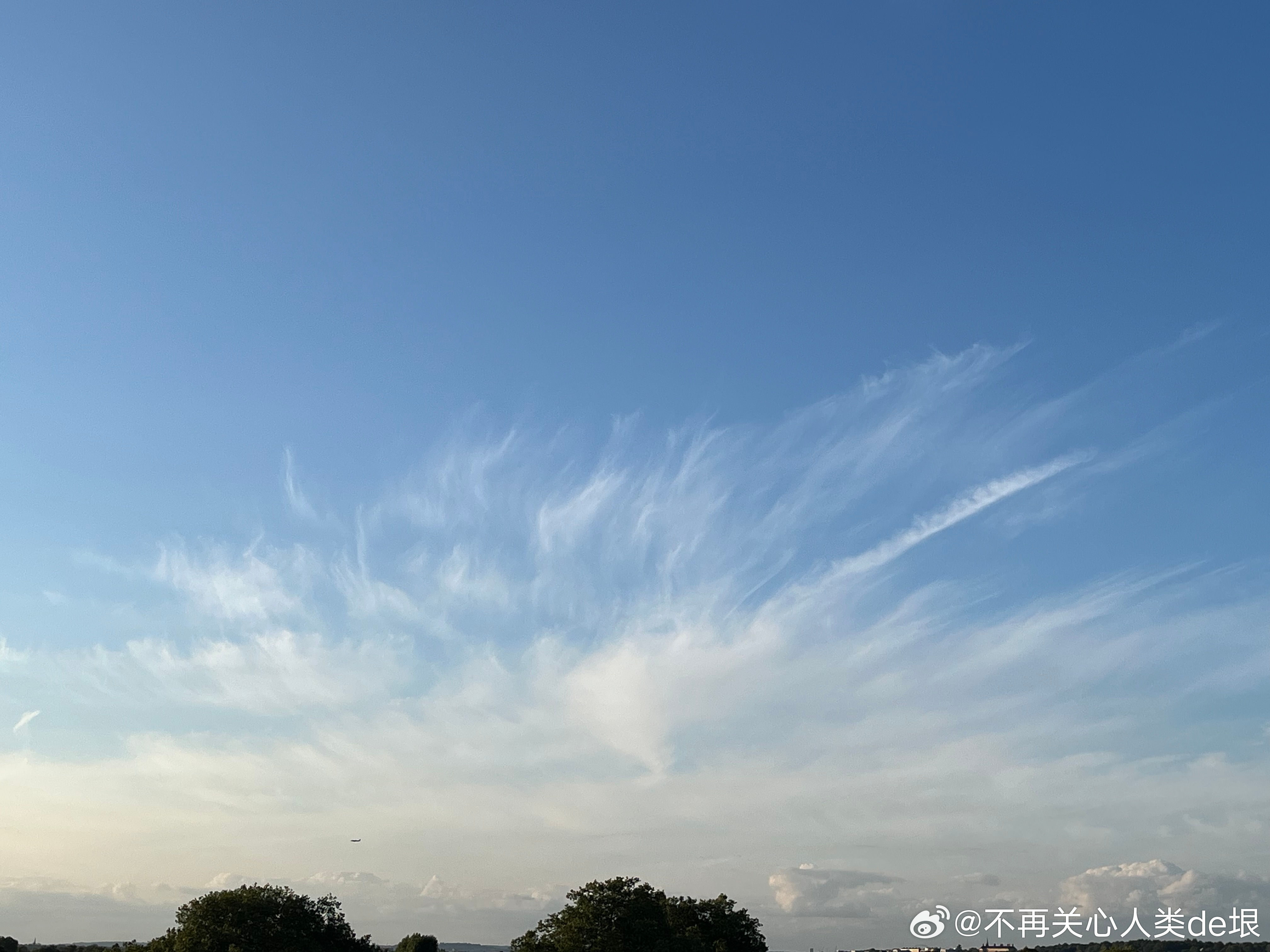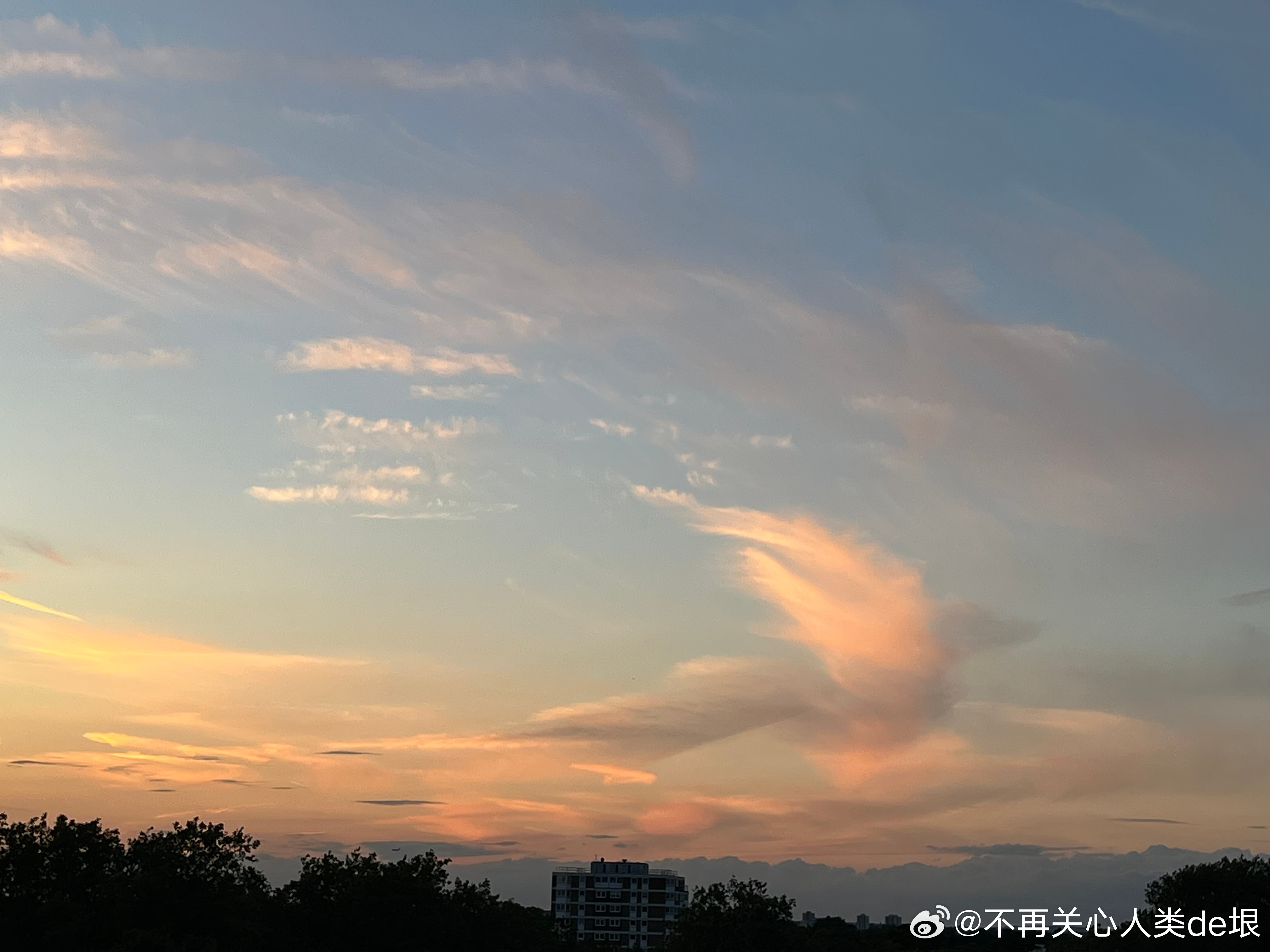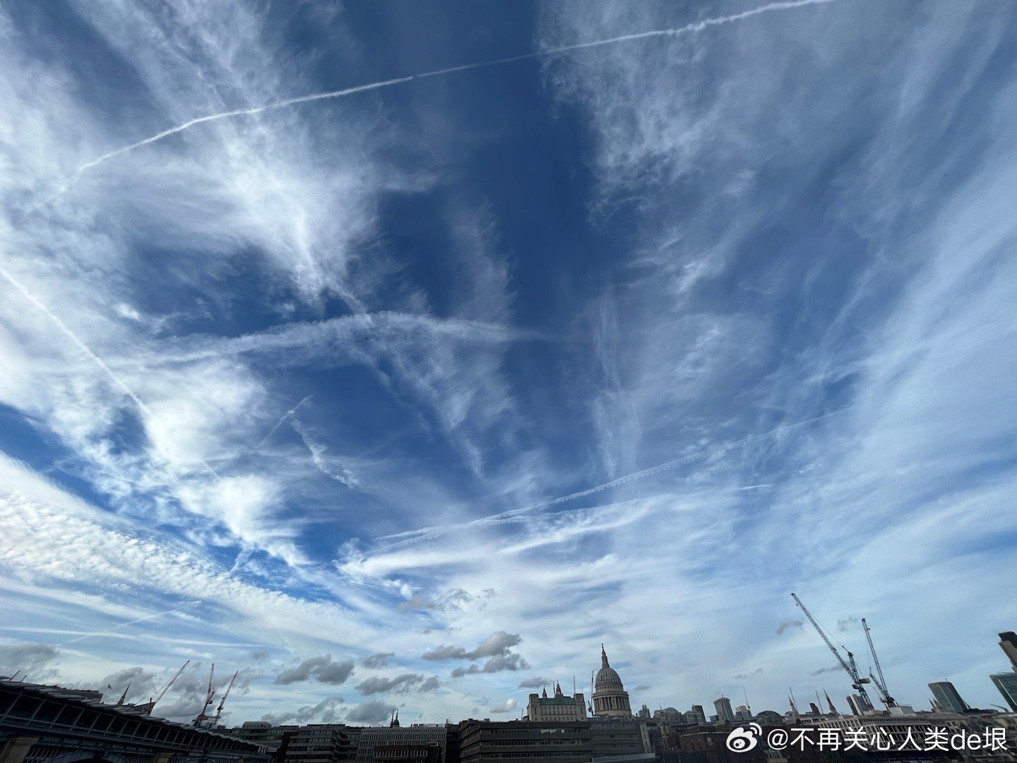 东京的早晨,只看见扩散的尾迹,没看见飞机。技术很巧妙 幸好我已经接受了伦敦的“尾迹图像识别训练”,不然不容易看出这些并不是真正的云。看来全世界都一样,没有一个国家可以例外。
