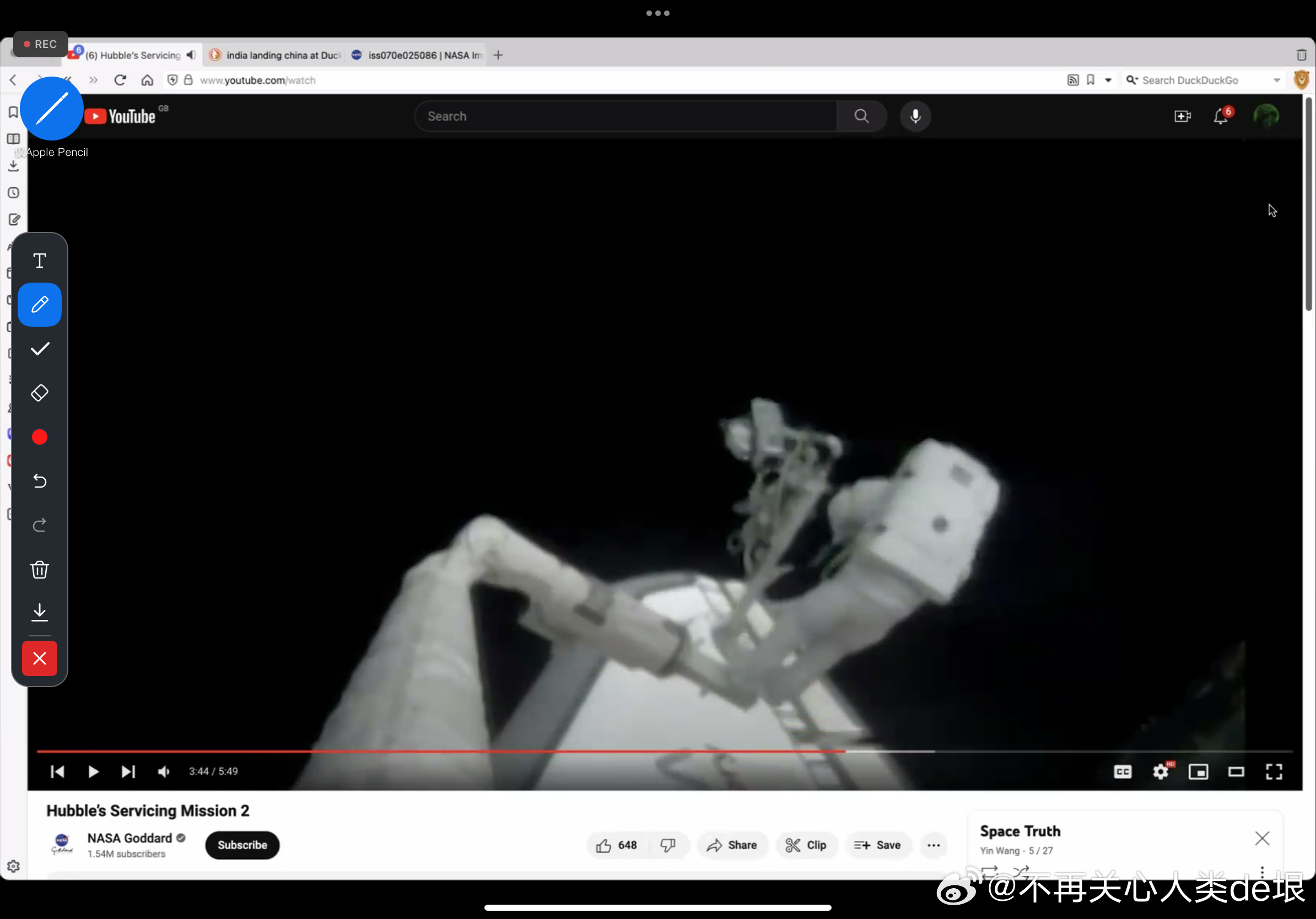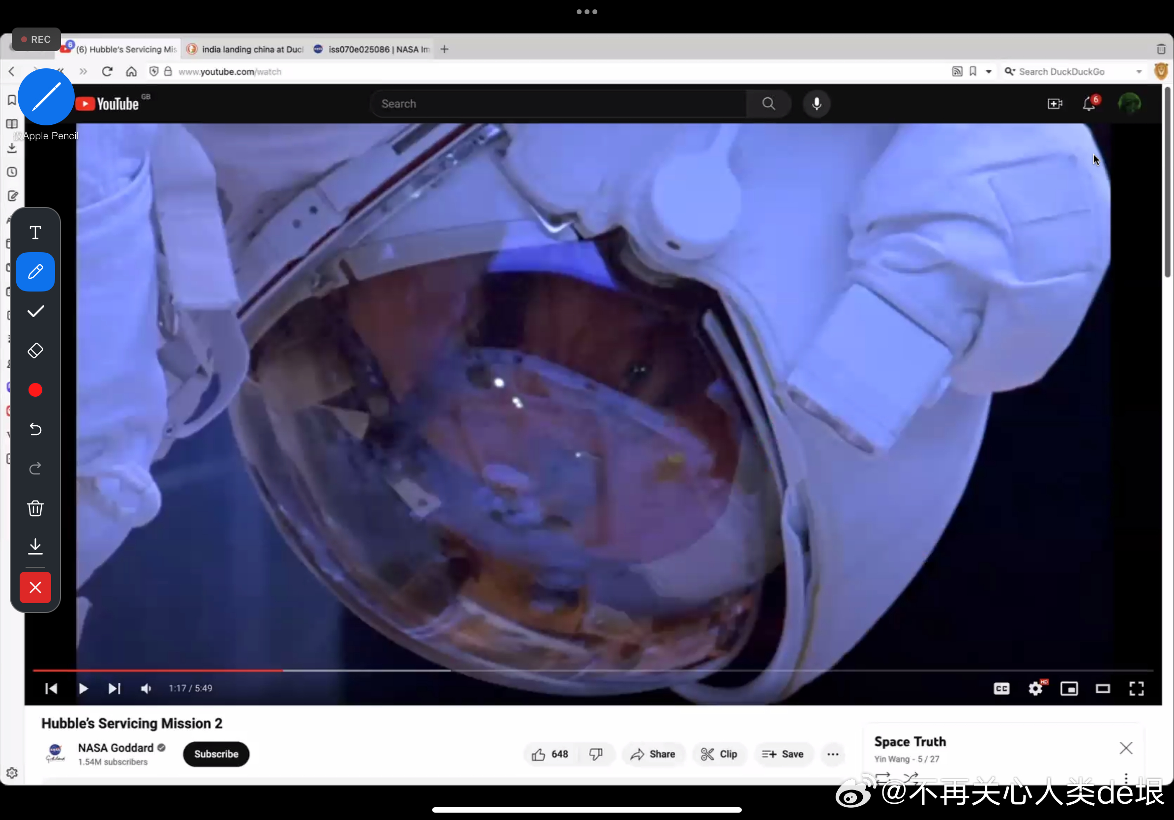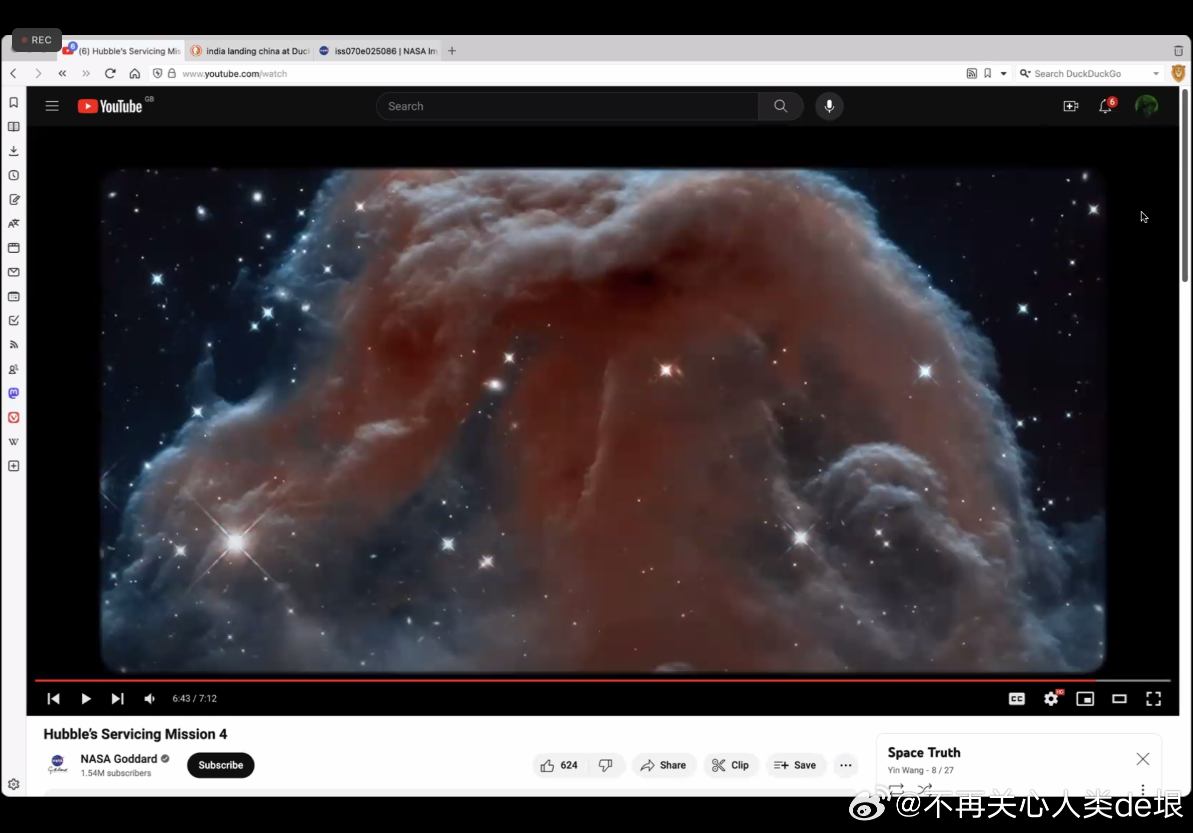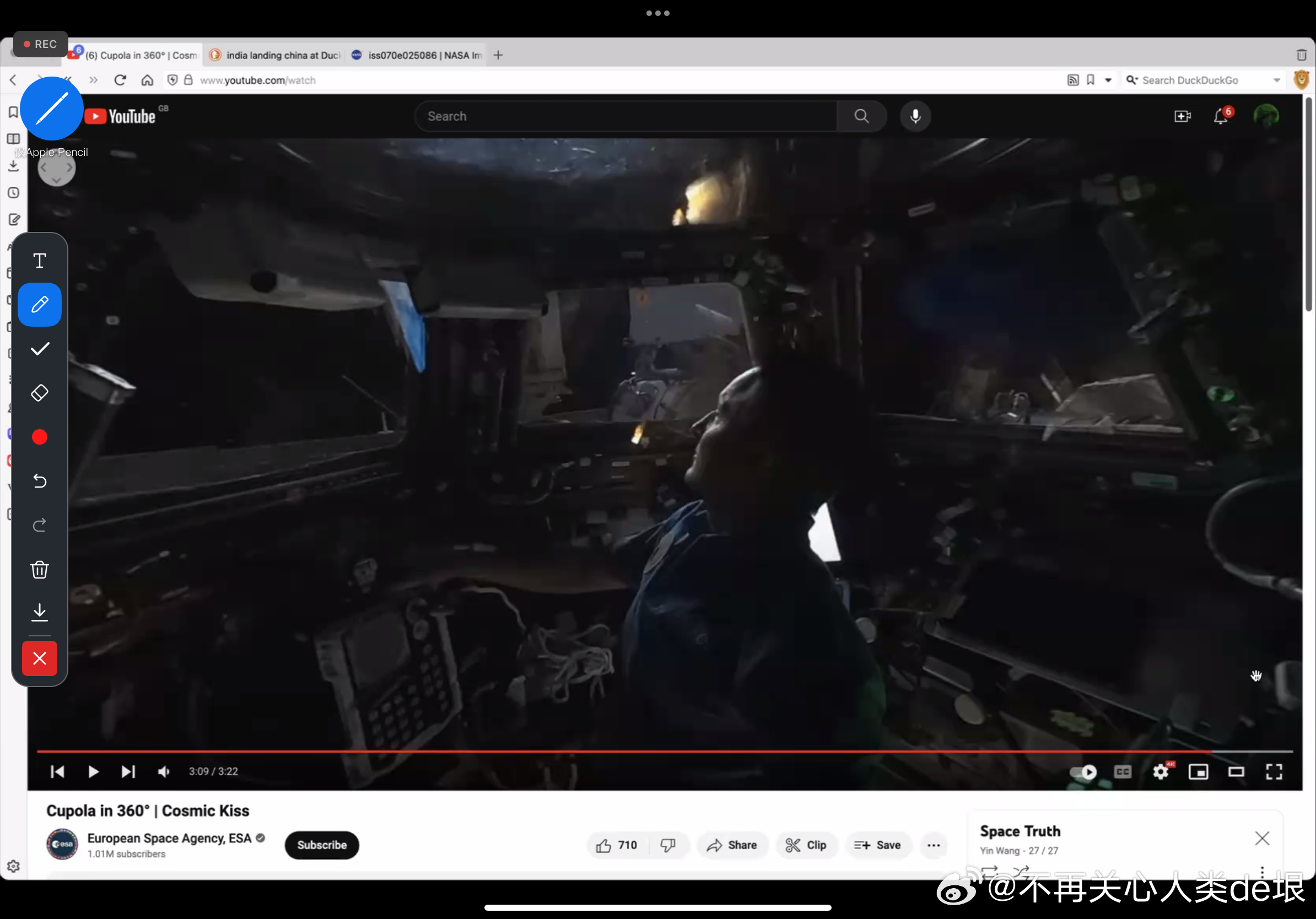 有人跟我说,空间站还是真的吧,国际空间站天天都在直播。其实我之前已经指出过,这些所谓的“国际空间站直播”都是假的,完全看不到星空。之前有大概两个 YouTube 频道,号称是“ISS 直播”,但却不是 NASA 官方频道。