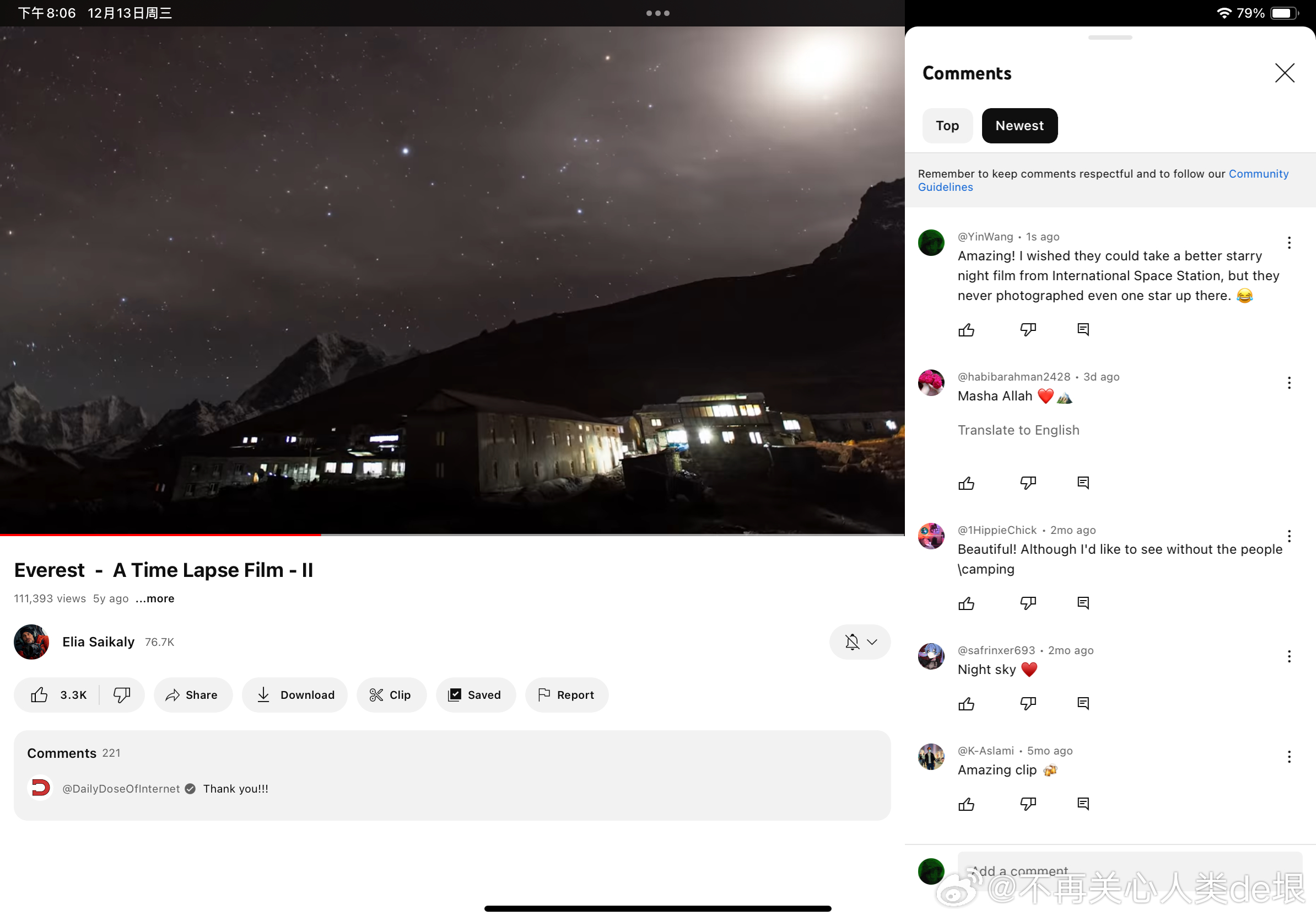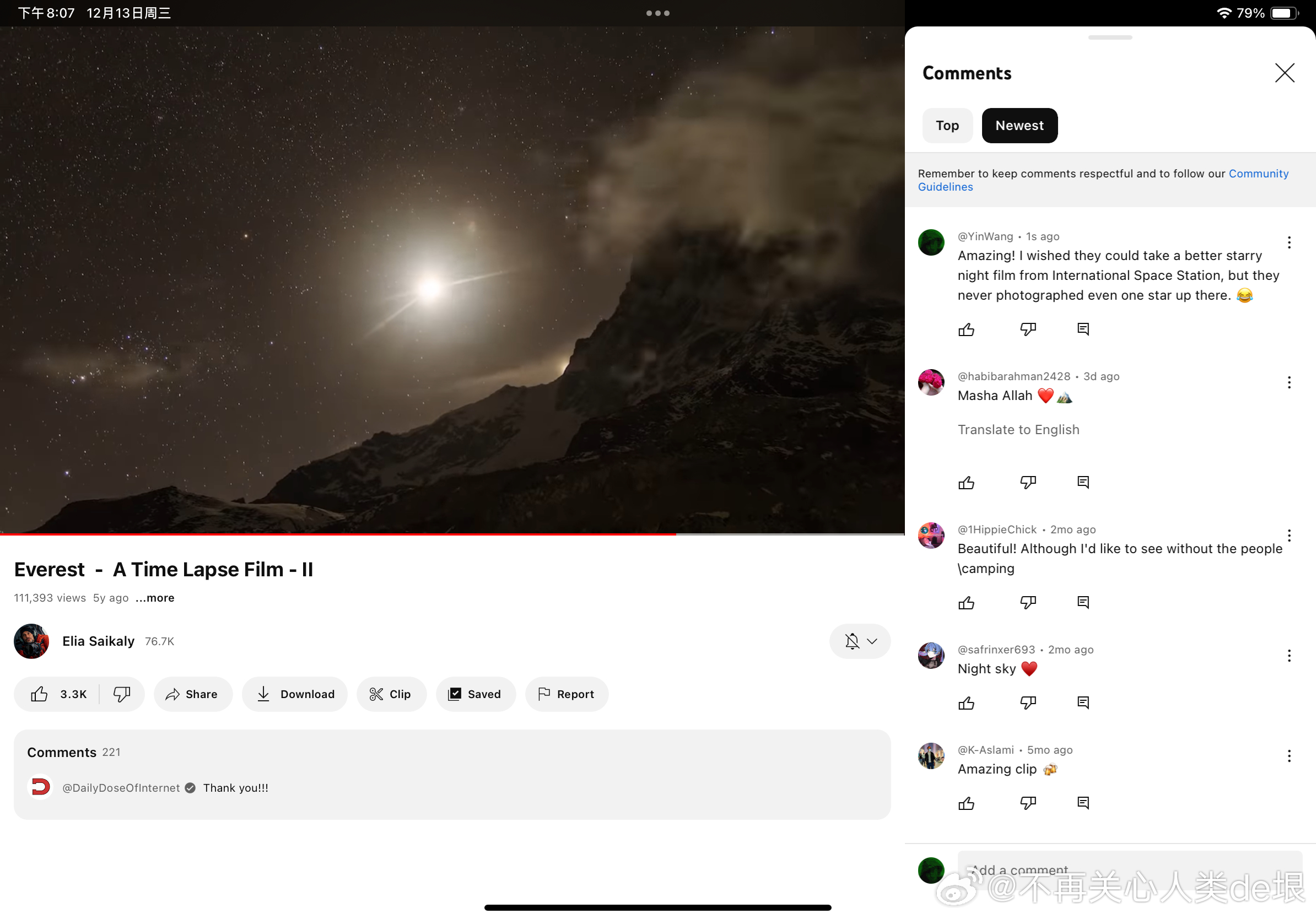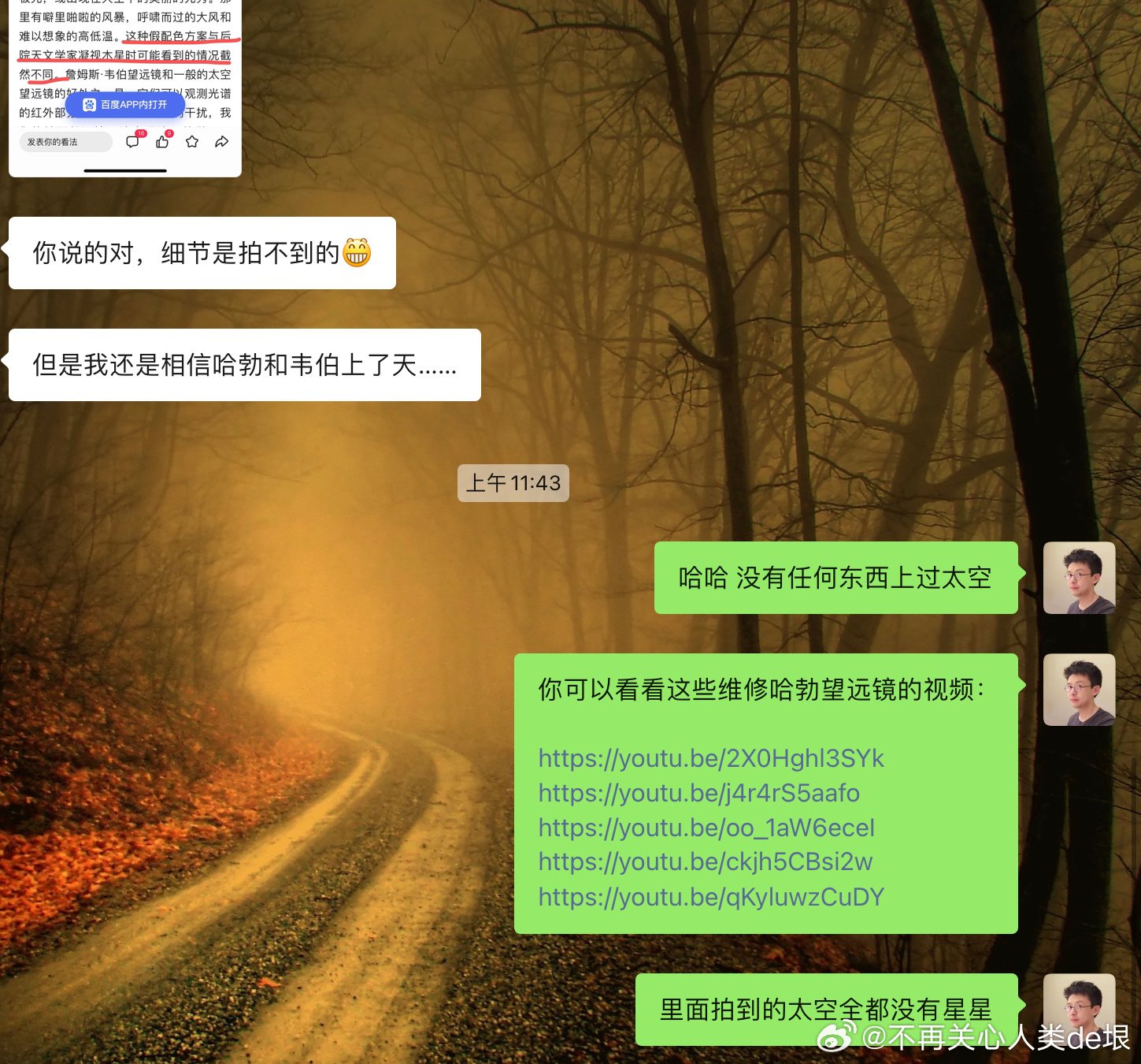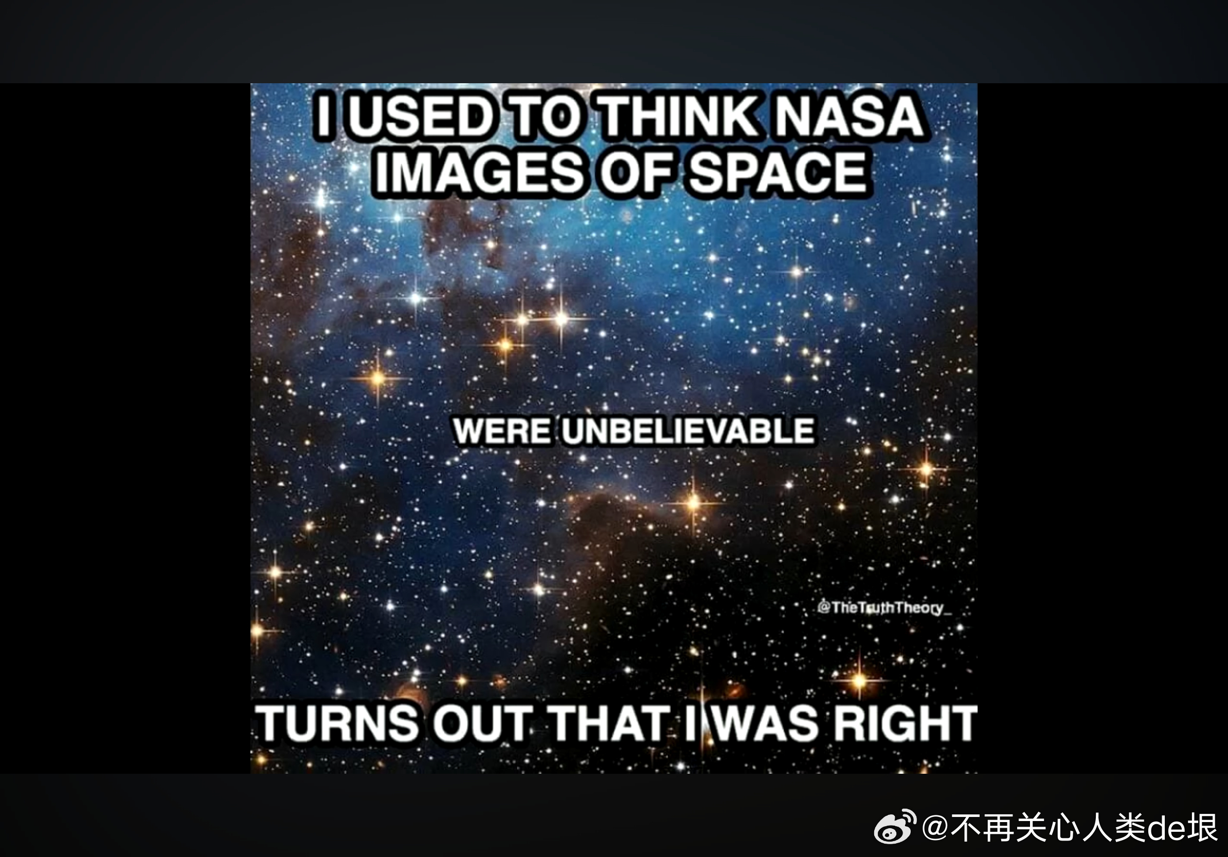 有人跟我说,空间站还是真的吧,国际空间站天天都在直播。其实我之前已经指出过,这些所谓的“国际空间站直播”都是假的,完全看不到星空。之前有大概两个 YouTube 频道,号称是“ISS 直播”,但却不是 NASA 官方频道。