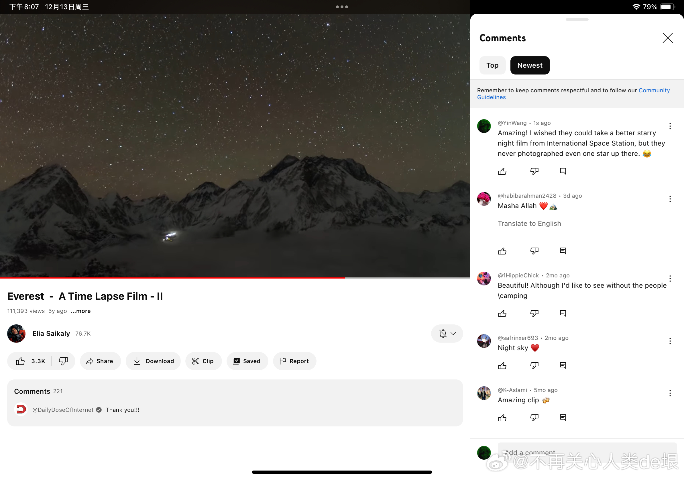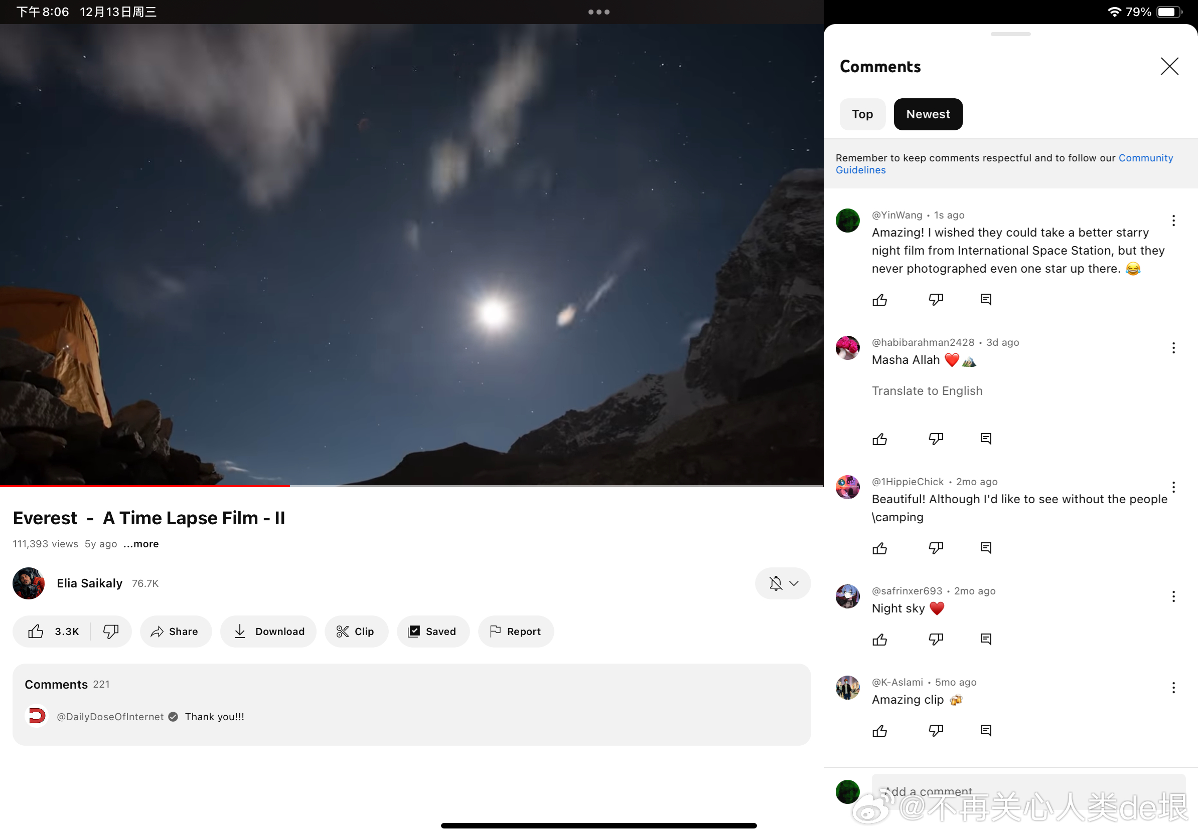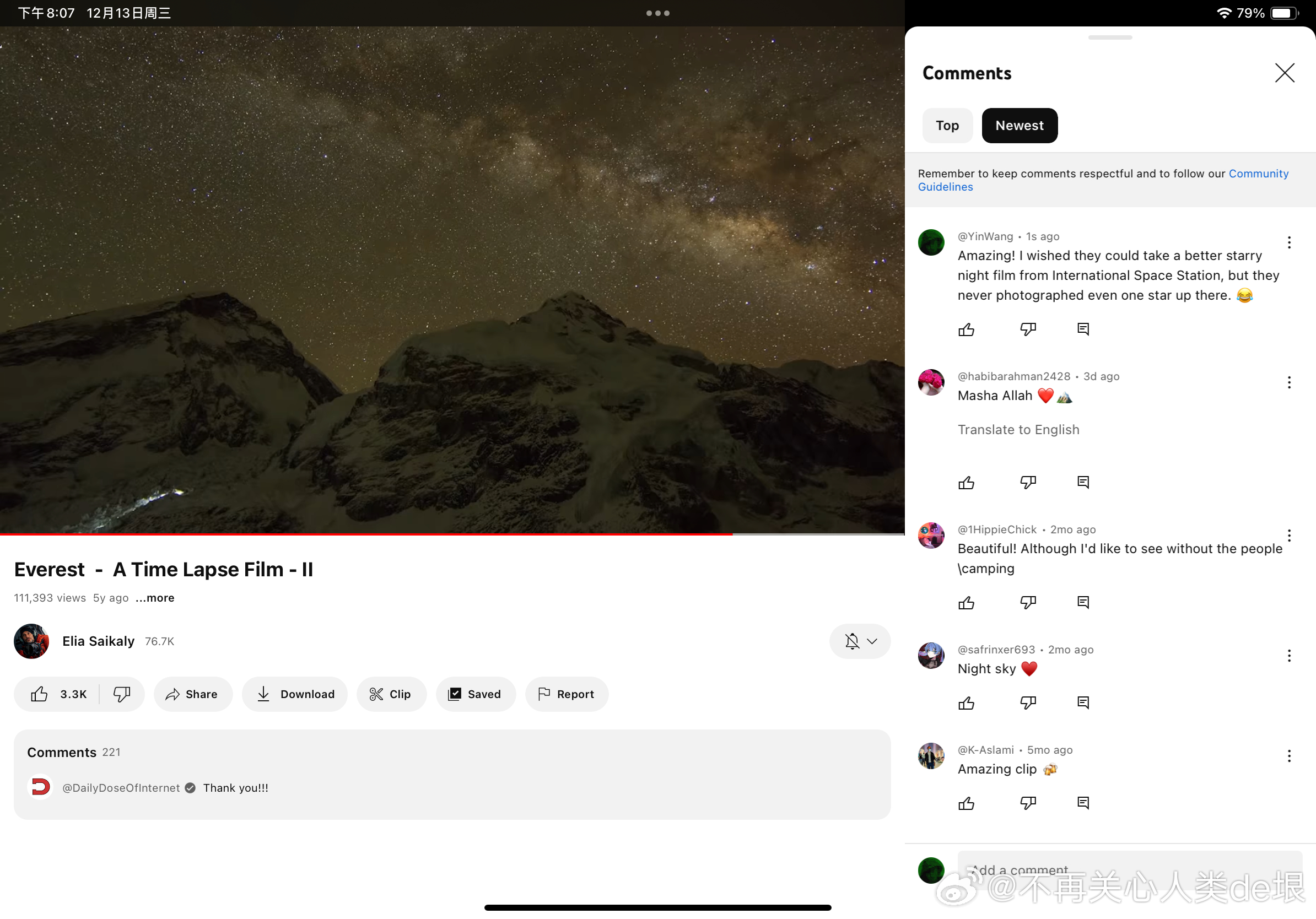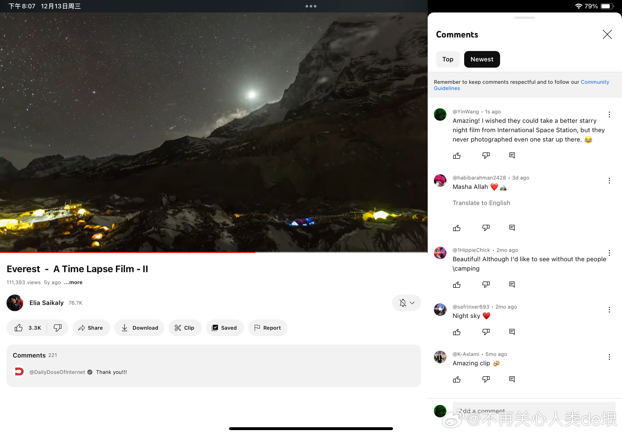 有人跟我说,空间站还是真的吧,国际空间站天天都在直播。其实我之前已经指出过,这些所谓的“国际空间站直播”都是假的,完全看不到星空。之前有大概两个 YouTube 频道,号称是“ISS 直播”,但却不是 NASA 官方频道。