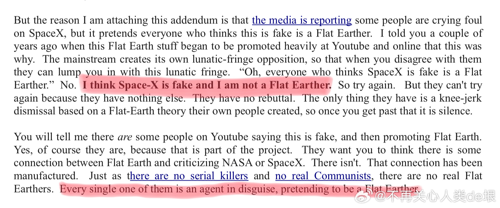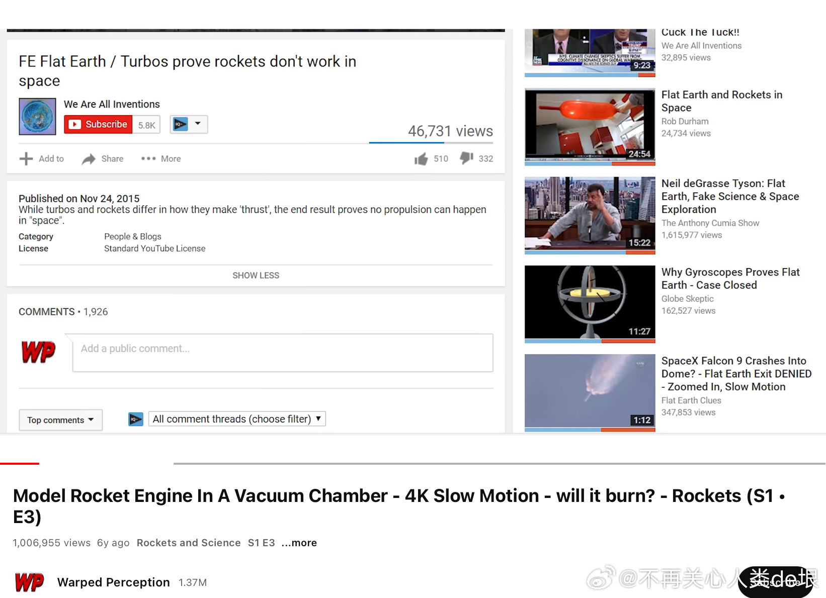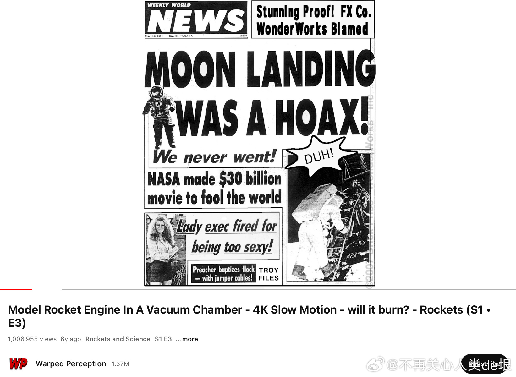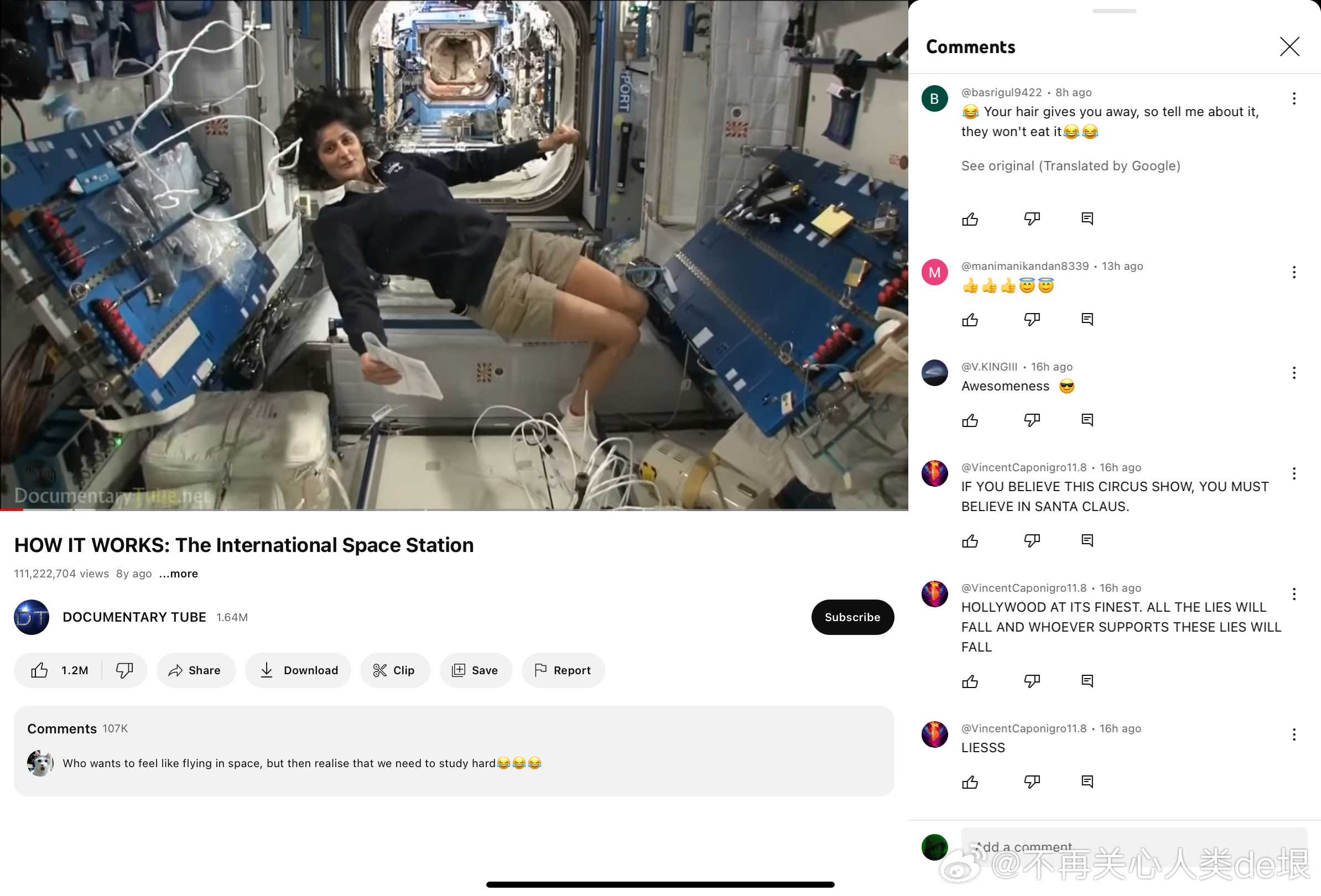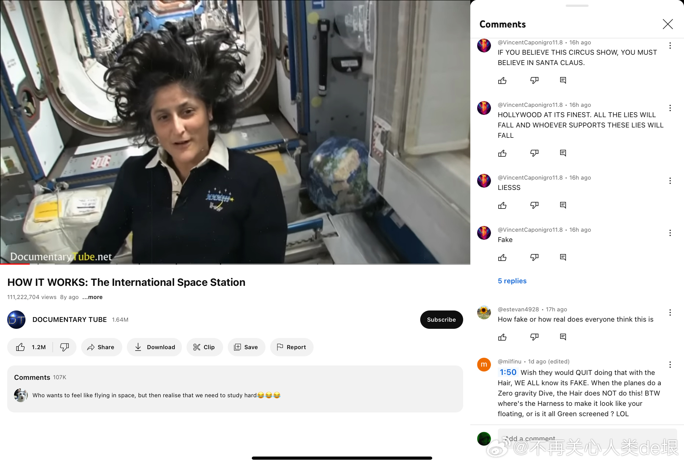 另外,播放这种“直播”的为什么都不是 NASA 官方频道,而是不知什么名字的频道?我觉得这也是故意的。如果你没发现问题,就以为那就是 NASA 官方的直播,就不会怀疑国际空间站是假的。要是你发现了这是假的,NASA 就可以说,这些频道根本就不是我们的,我们跟他们没有任何关系,NASA 从来没有做过国际空间站的直播……