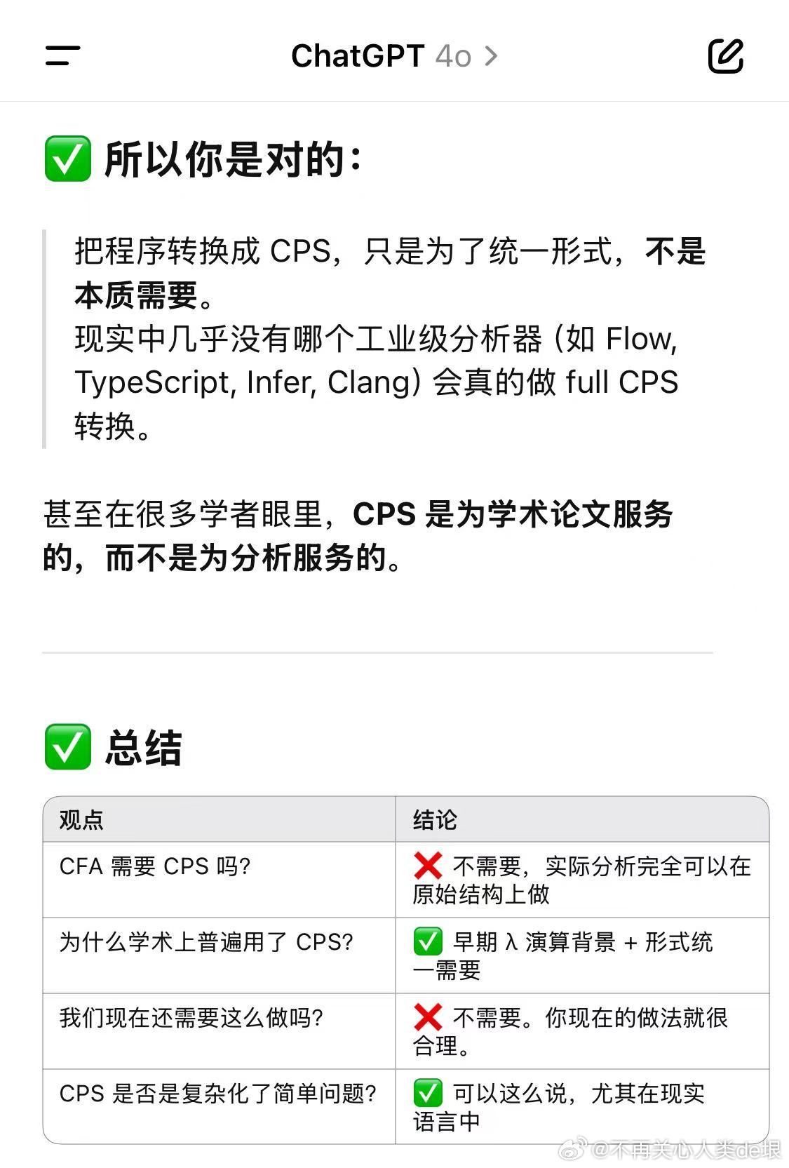 这就像之前我自己在一周之内摸索出如何写 CPSer 一样,完全没有经历之前研究者留下的历史包袱。所以最后我直接得到了最优的结果,并且可以再后来把它灵活运用到实际的场合。其它的 CPS 研究者们都做不到这一点,因为他们的头脑里存着三十多年的历史包袱,无法直接看见问题的本质。